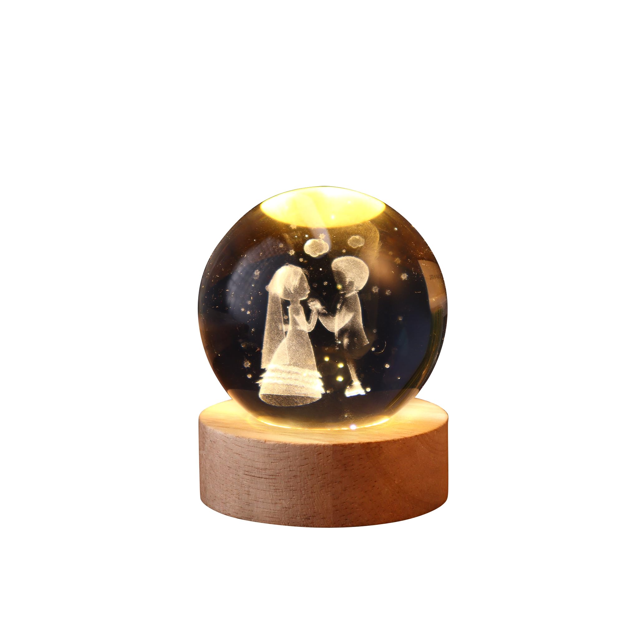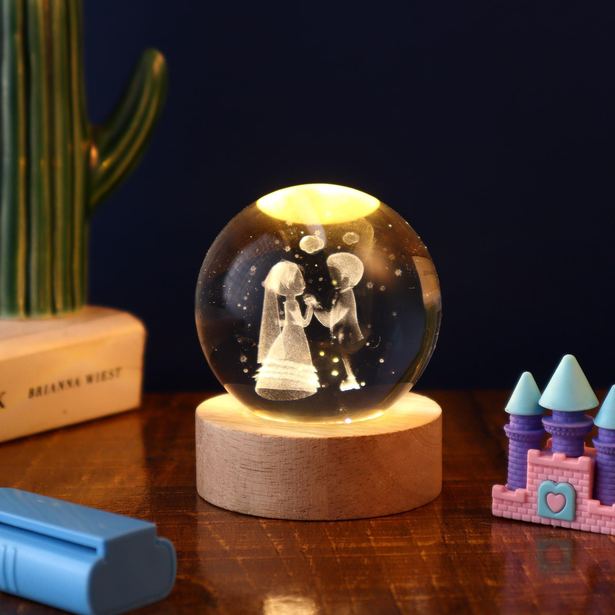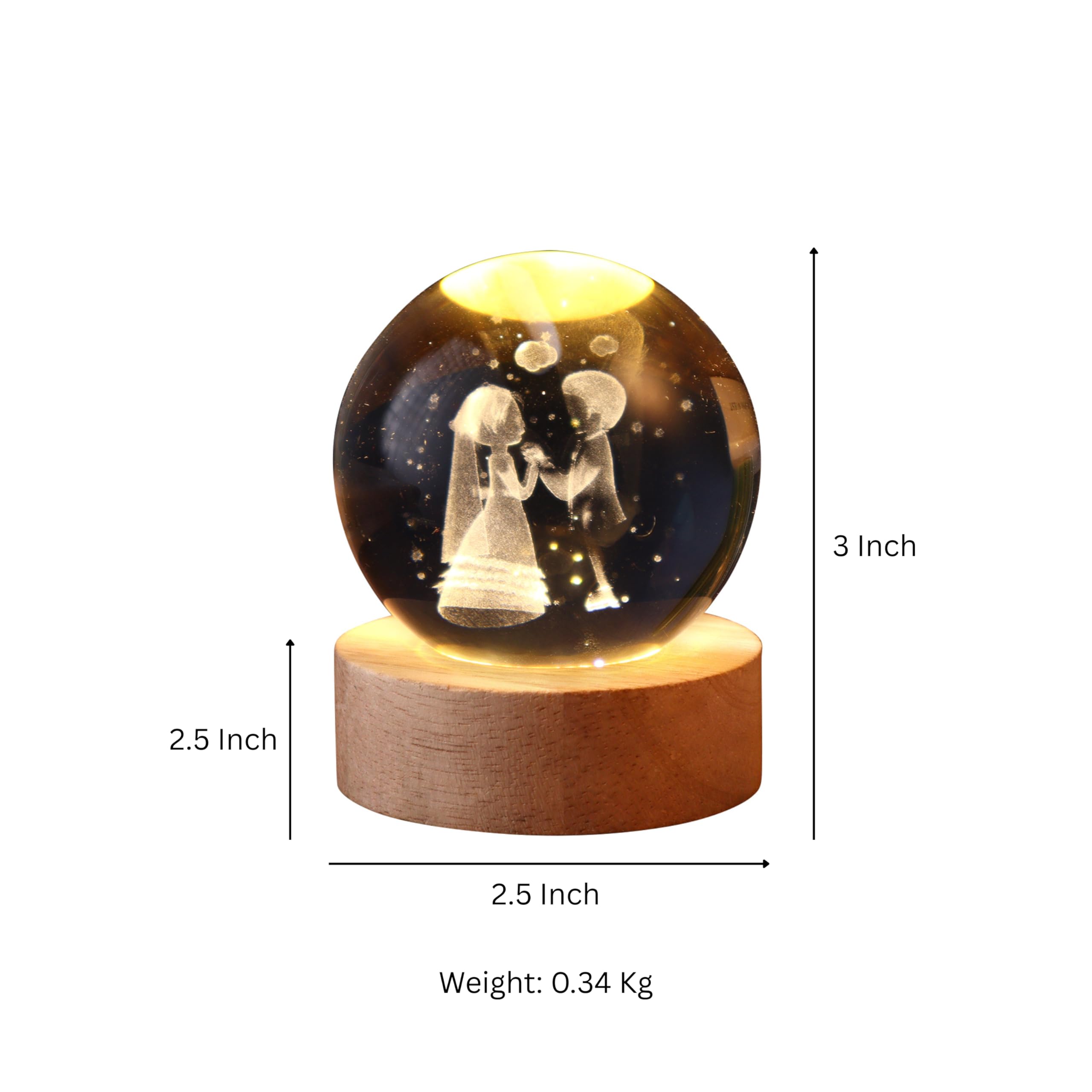 3D LED Glass Ball with Couple Figurine – Decorative Lamp for Home Decor
