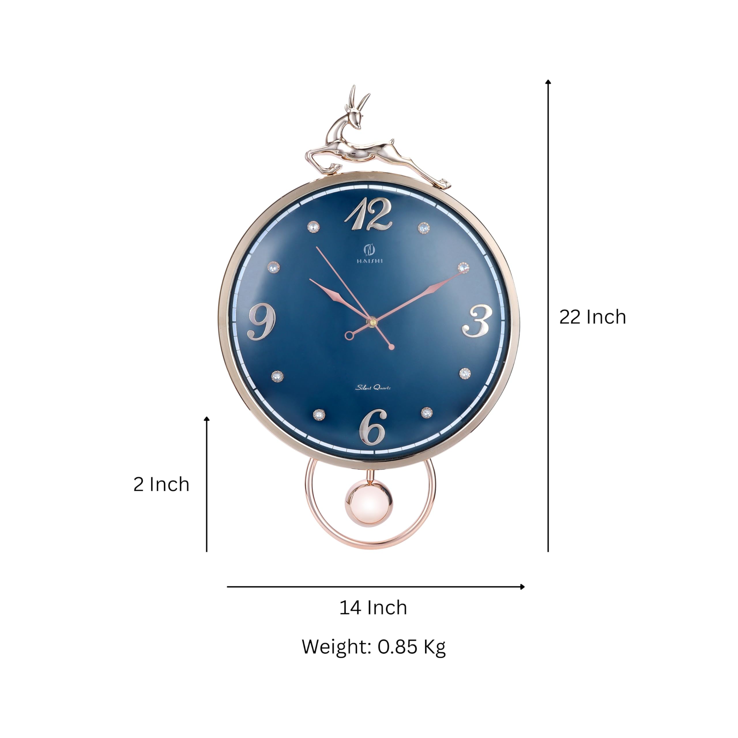 Enhance interiors with this blue and gold wall clock featuring a graceful pendulum. Crafted for durability, it adds a touch of sophistication to living rooms, bedrooms, or office spaces. The clear dial ensures easy time reading, while the pendulum movement brings a classic charm to modern décor. Lightweight yet sturdy, it’s easy to hang and maintain. Perfect for gifting or personal use, this decorative clock blends functionality with style, making it a timeless addition to any wall. Its elegant color combination complements various interior themes seamlessly.