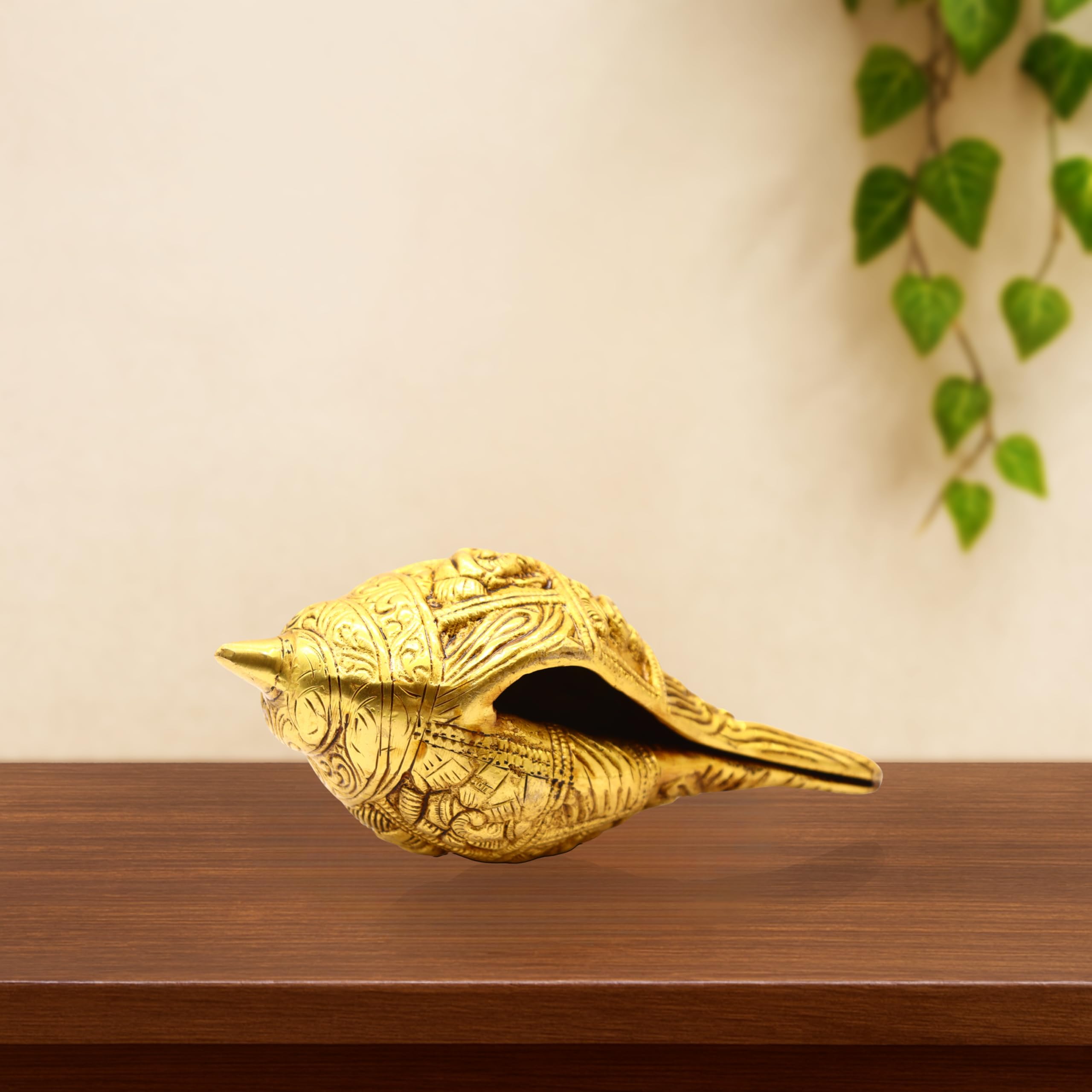 This beautifully crafted Brass Shankh Showpiece is made from solid heavy brass and features highly detailed traditional carvings across its body, giving it a divine and artistic appearance. Ideal for mandir setups, vastu placements, pooja spaces, or living room décor, this shankh symbolizes purity, blessings, and positive energy. Its golden antique finish enhances both modern and traditional interiors, making it a graceful decorative piece. Strong, durable, and spiritually meaningful, this brass shankh also makes a wonderful gift for religious ceremonies and festive celebrations.