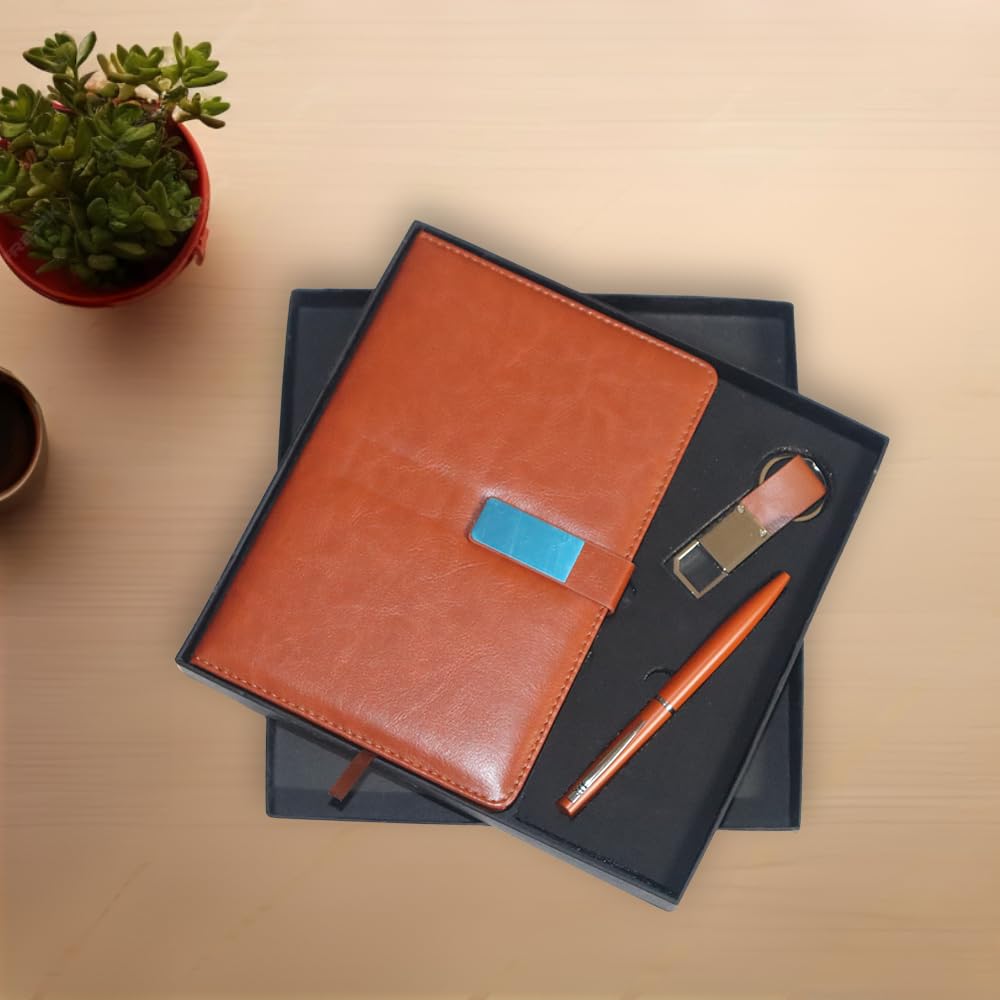A thoughtfully curated executive gift set featuring a smooth-writing pen, a premium diary, and a stylish keychain. Perfect for professionals, this set combines practicality, style, and convenience — an ideal token of appreciation for employees, clients, and business partners.