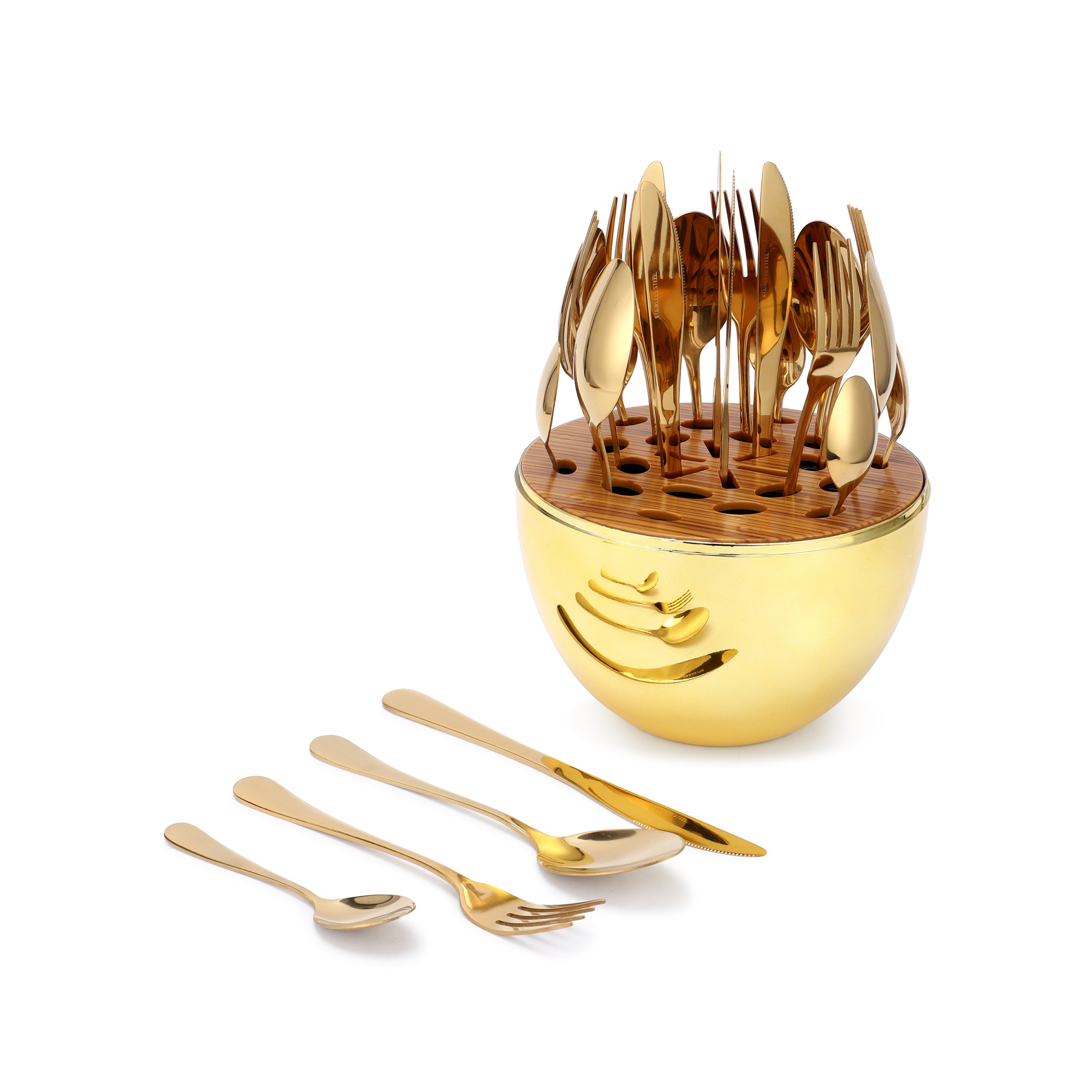 Gold Egg-Shaped Cutlery Holder Set for Spoon, Fork & Knife Storage