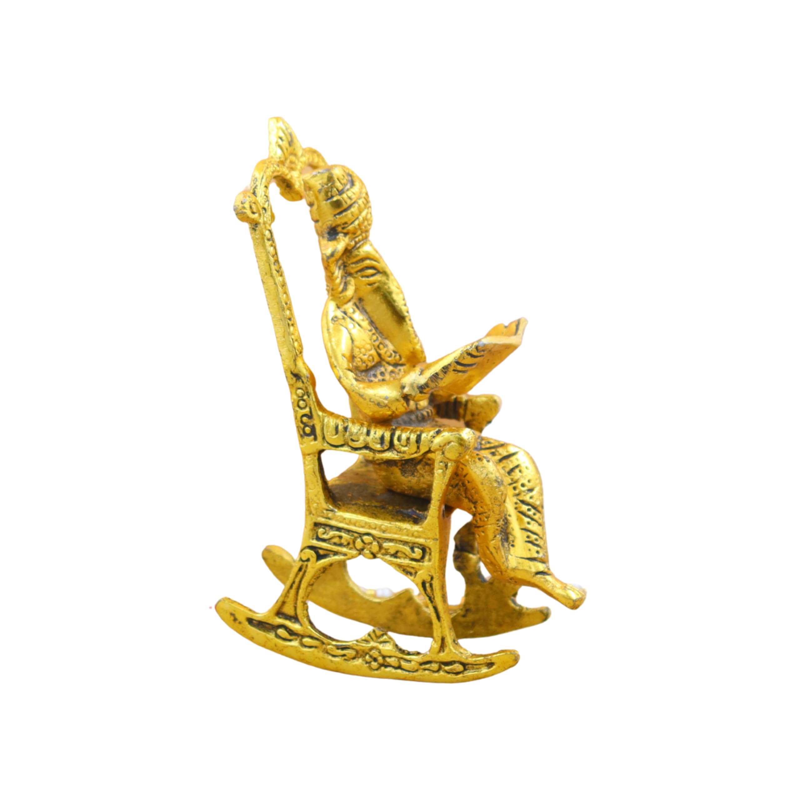 This exquisitely crafted Metal Ganesha is depicted sitting comfortably on a chair, engrossed in reading the Ramayan, symbolizing wisdom, knowledge, and spiritual growth. Perfect for enhancing the pooja room, living space, or office desk, it brings positive energy, learning, and devotion into your surroundings. Its detailed craftsmanship and serene expression make it an ideal decorative piece for Diwali, festive décor, or a thoughtful gift for weddings, anniversaries, and spiritual occasions. Available in three finishes – silver plated, gold plated, and copper finish.