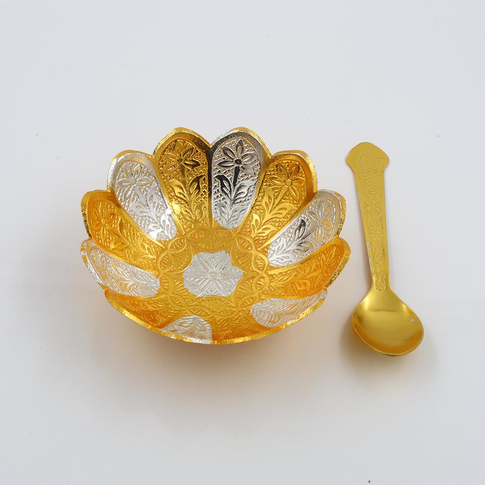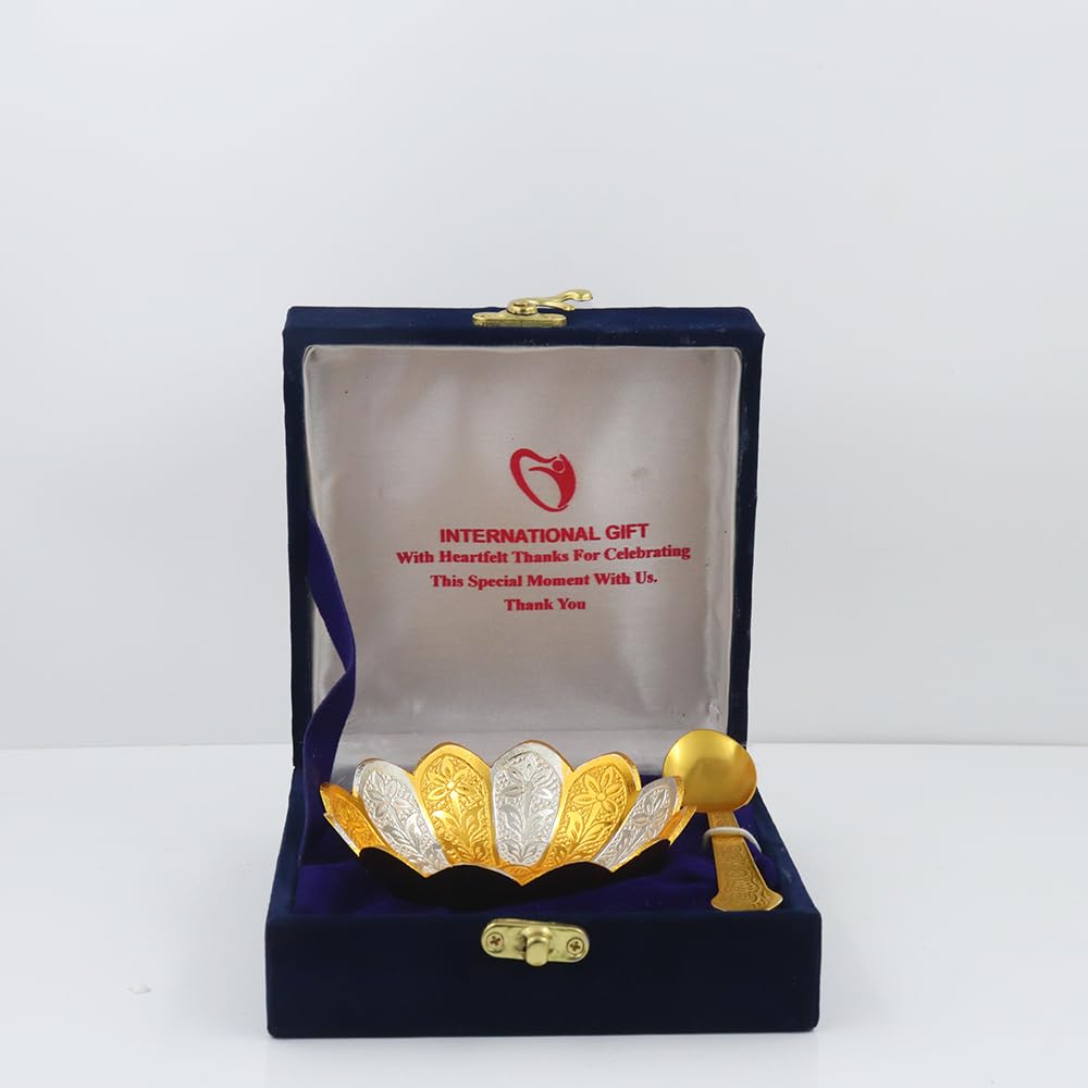 Gold Plated Lotus Bowl with Spoon in Velvet Box – Premium Gift Set