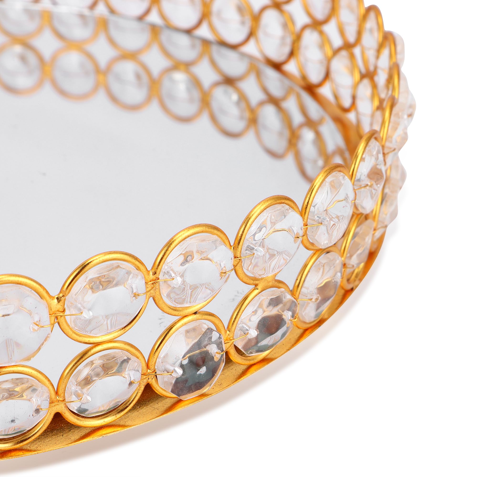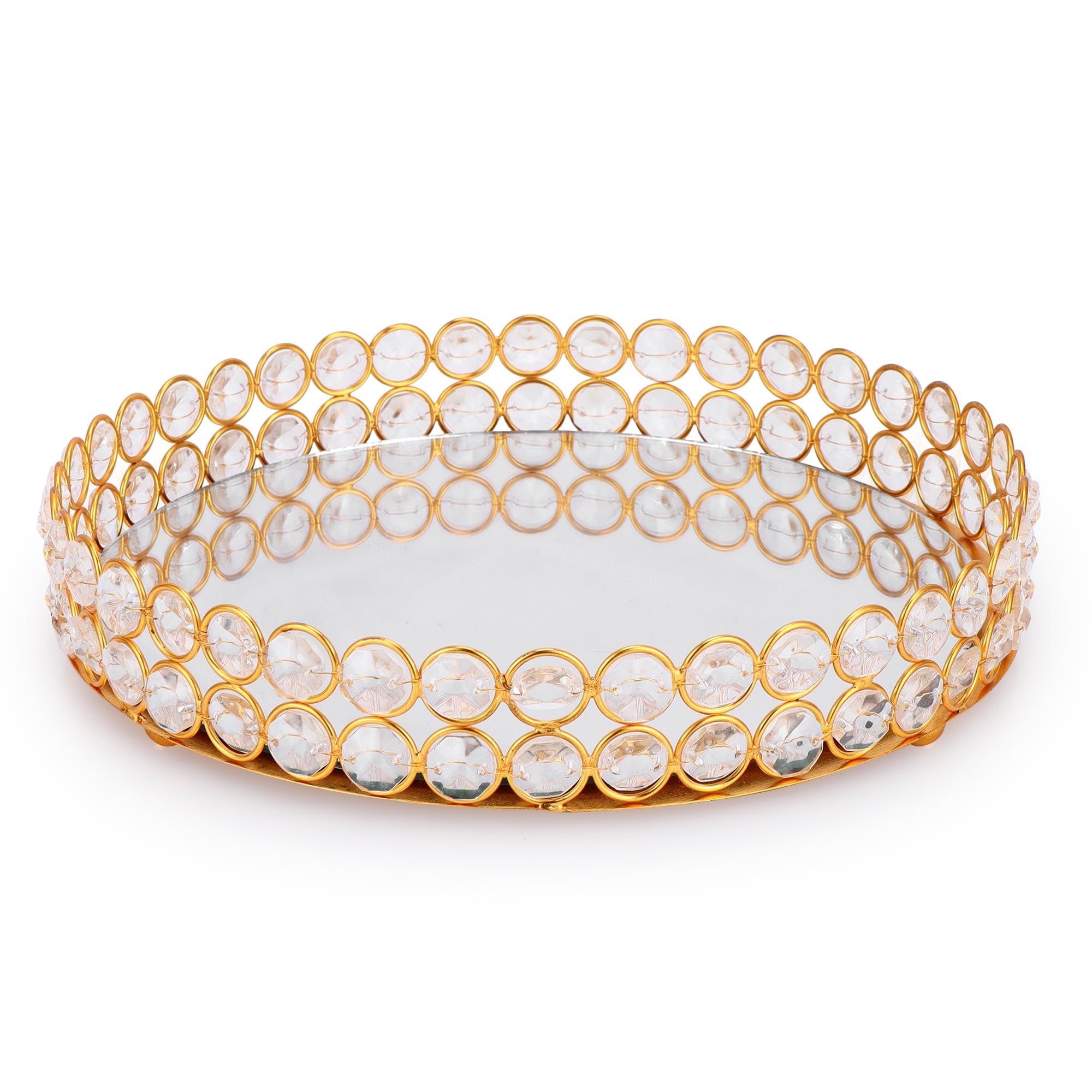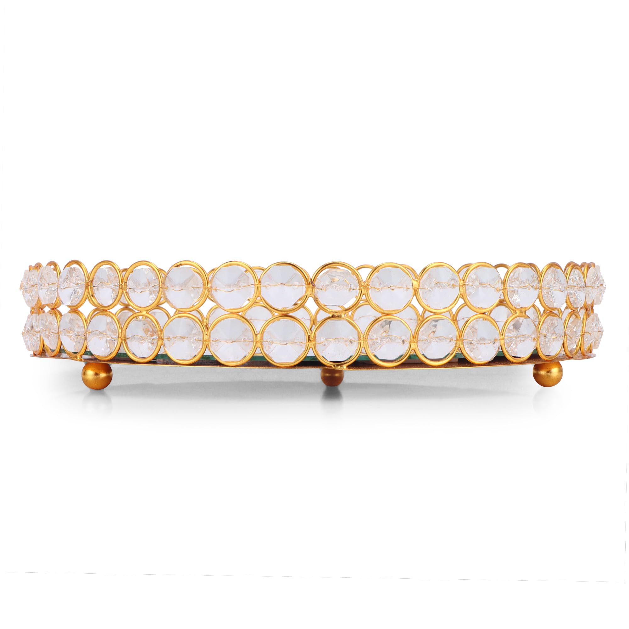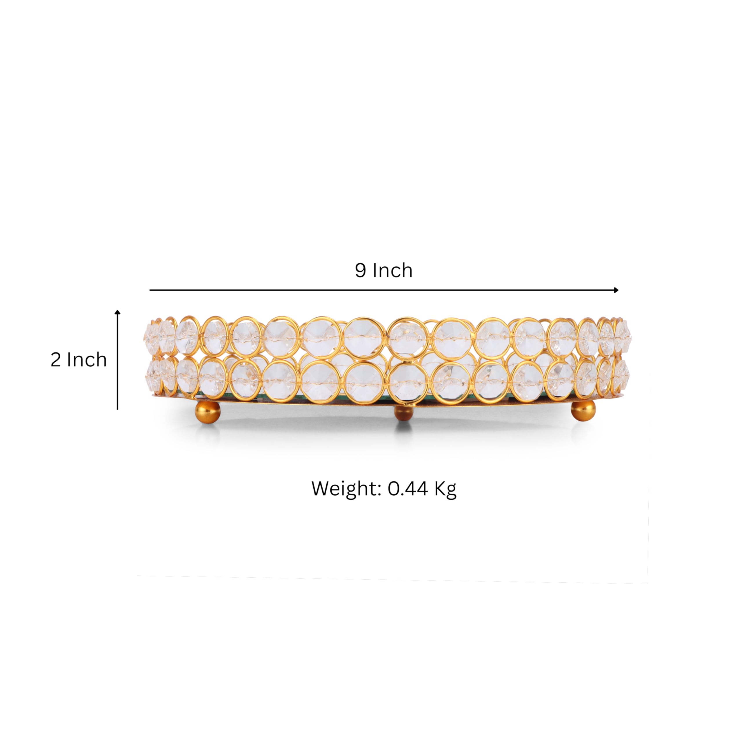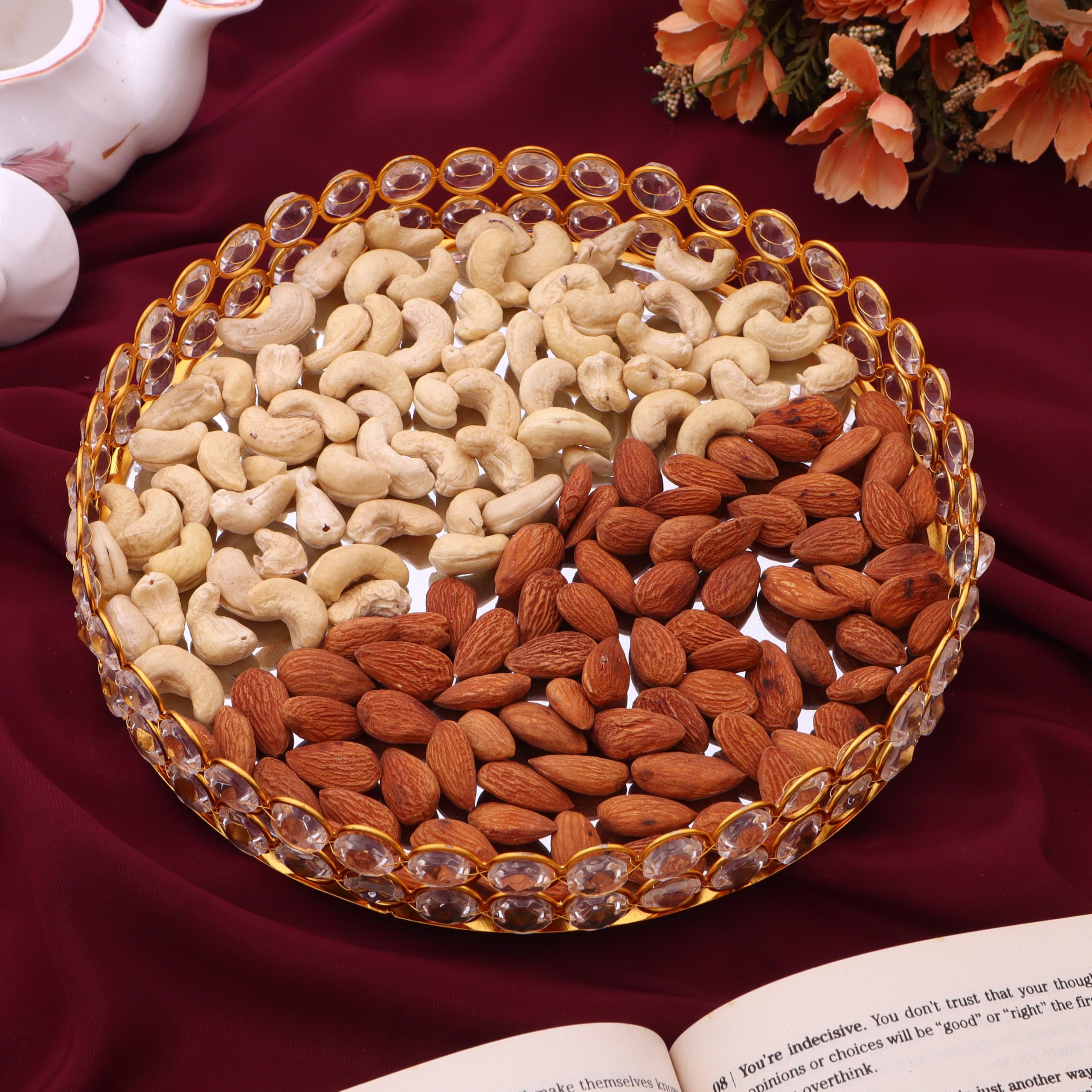 Golden Dry Fruit Tray with Golden Crystal Design for Serving & Décor