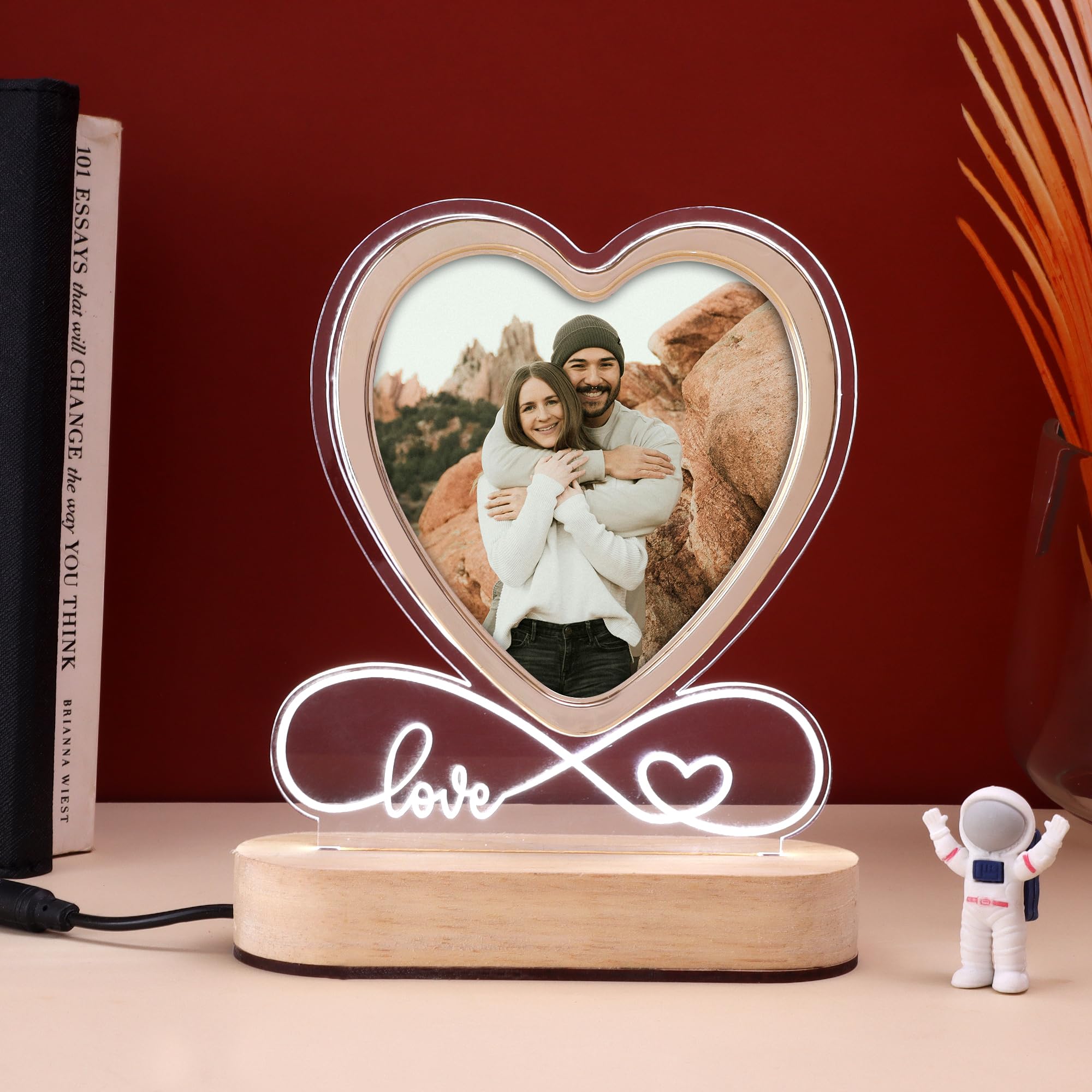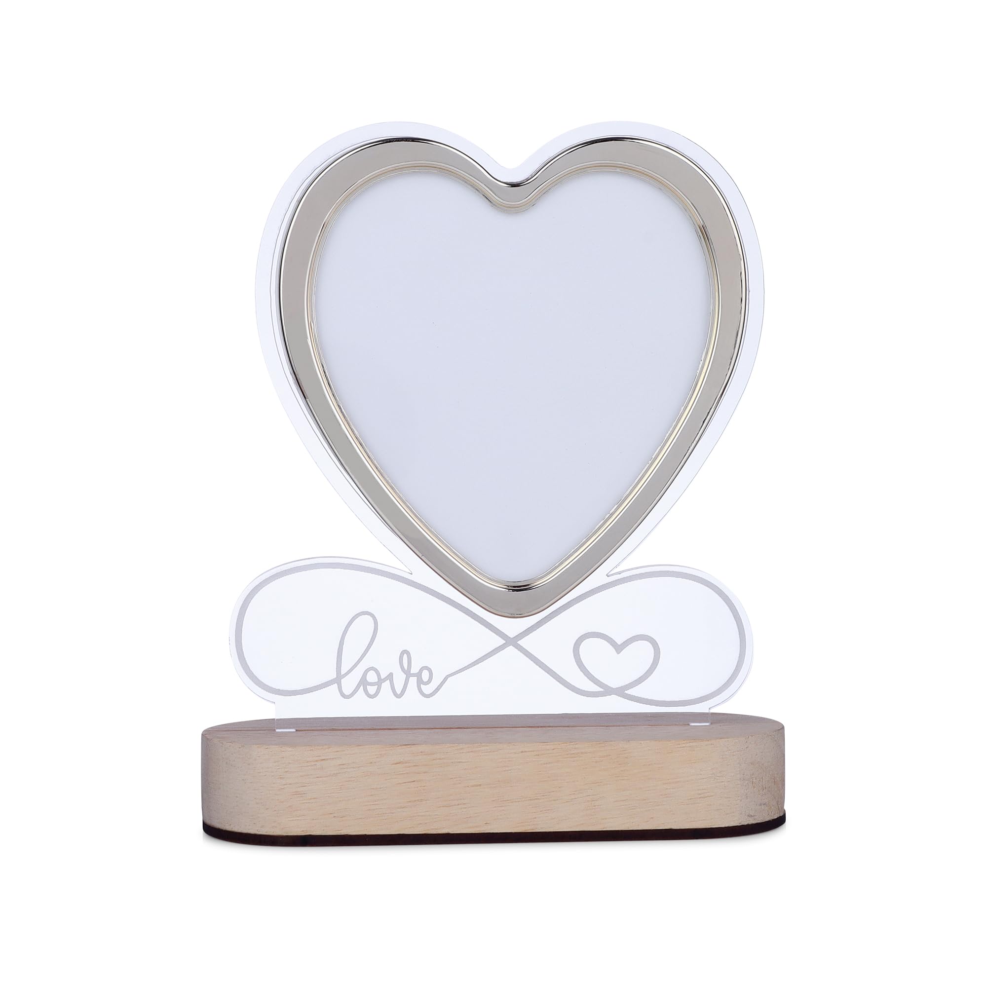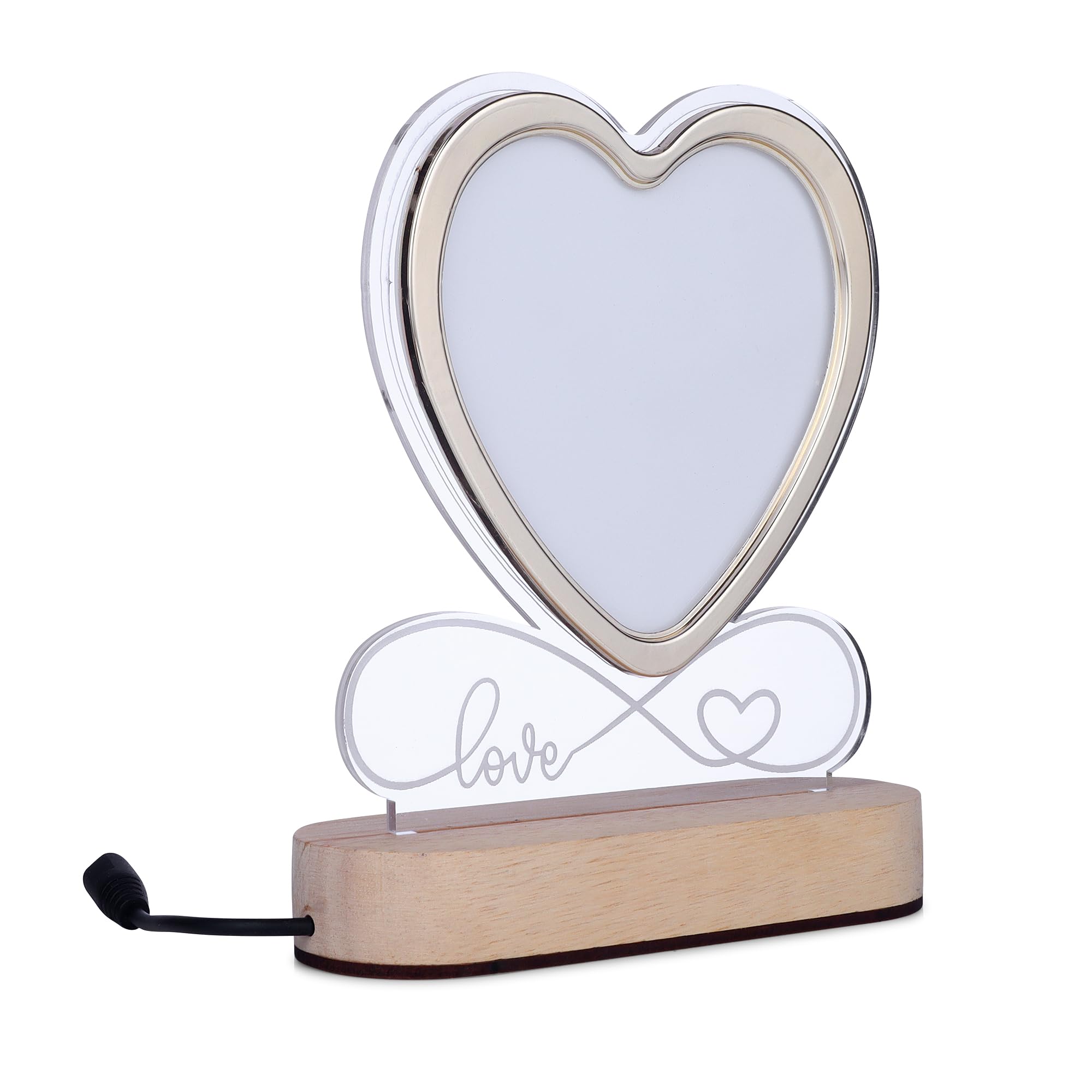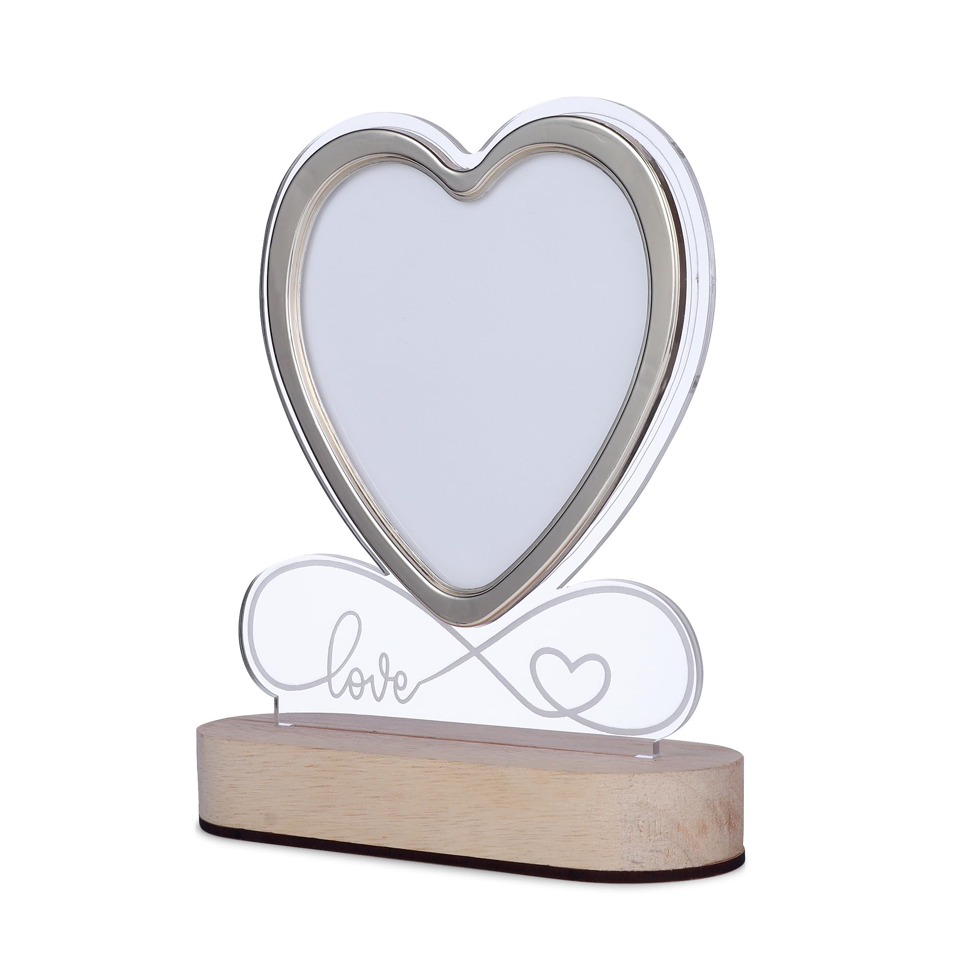 LED Heart-Shaped Acrylic Frame with “Love” Glow on Wooden Base