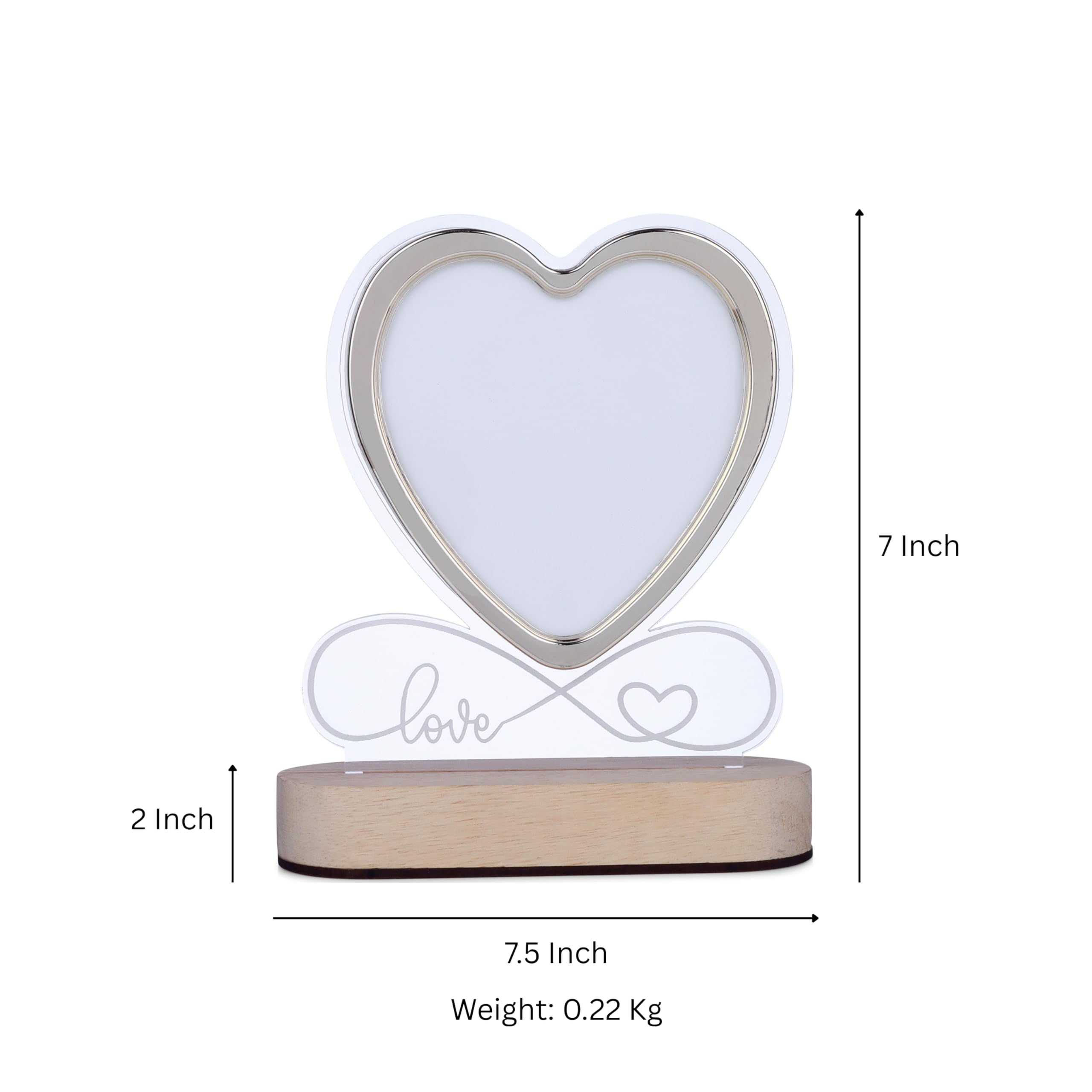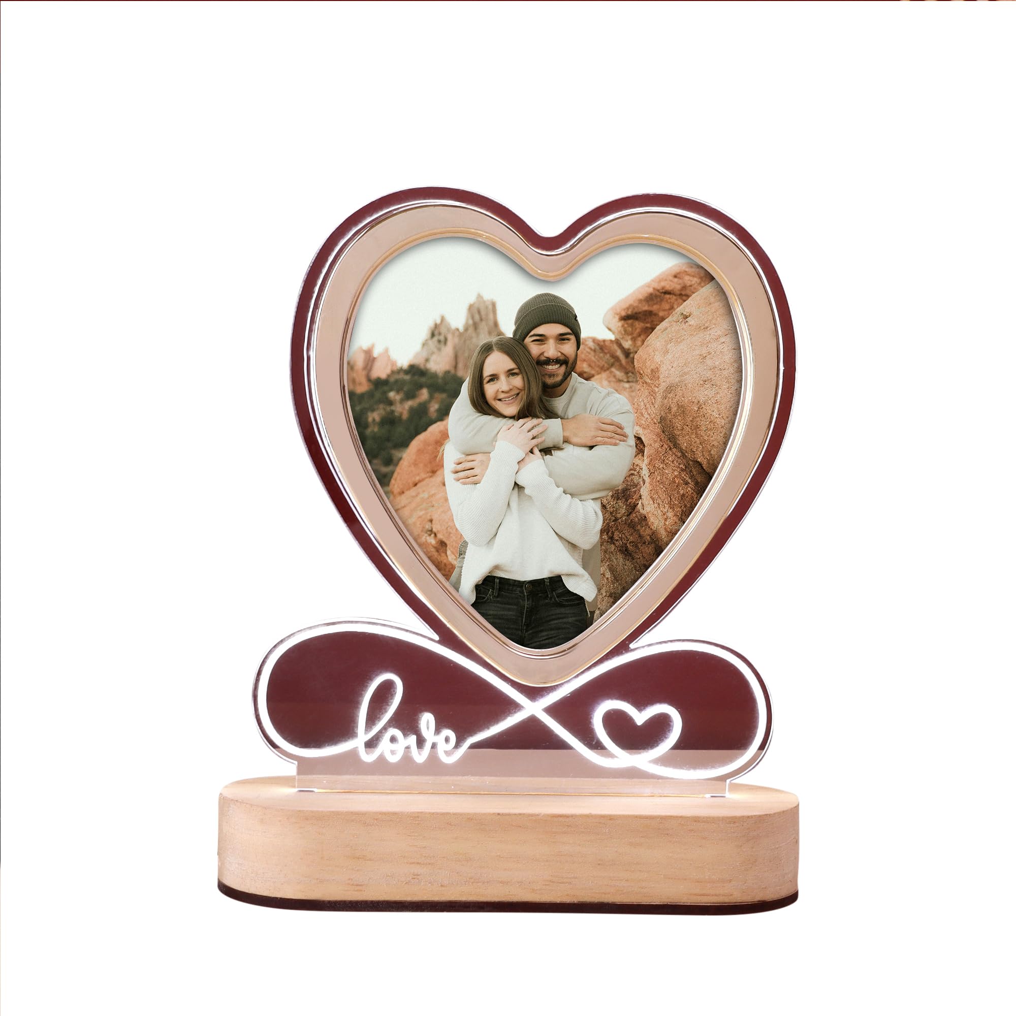 Romantic LED heart-shaped photo frame featuring glowing “Love” text and a sturdy wooden base. Perfect for gifting on anniversaries, weddings, or Valentine’s Day, this elegant frame adds a warm and charming touch to any home decor, making it ideal for bedrooms, living rooms, or study areas.
