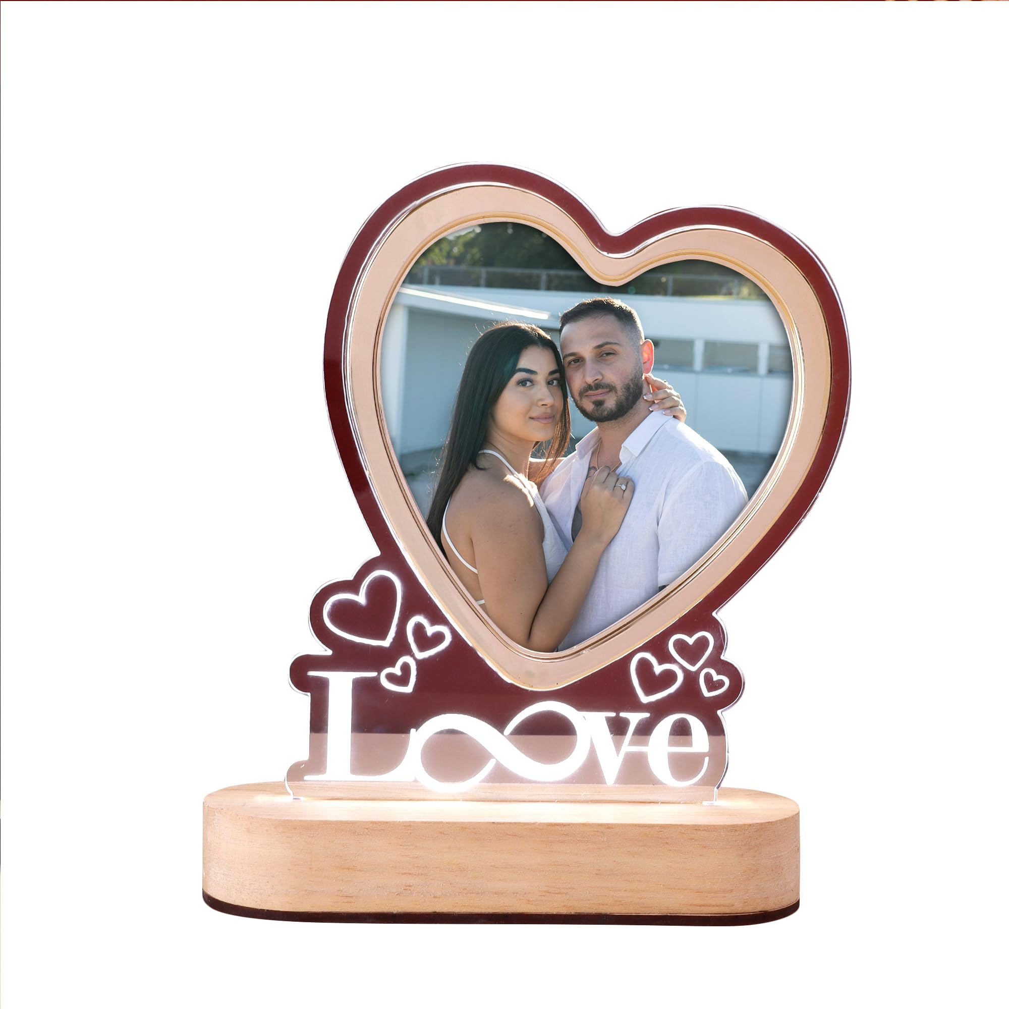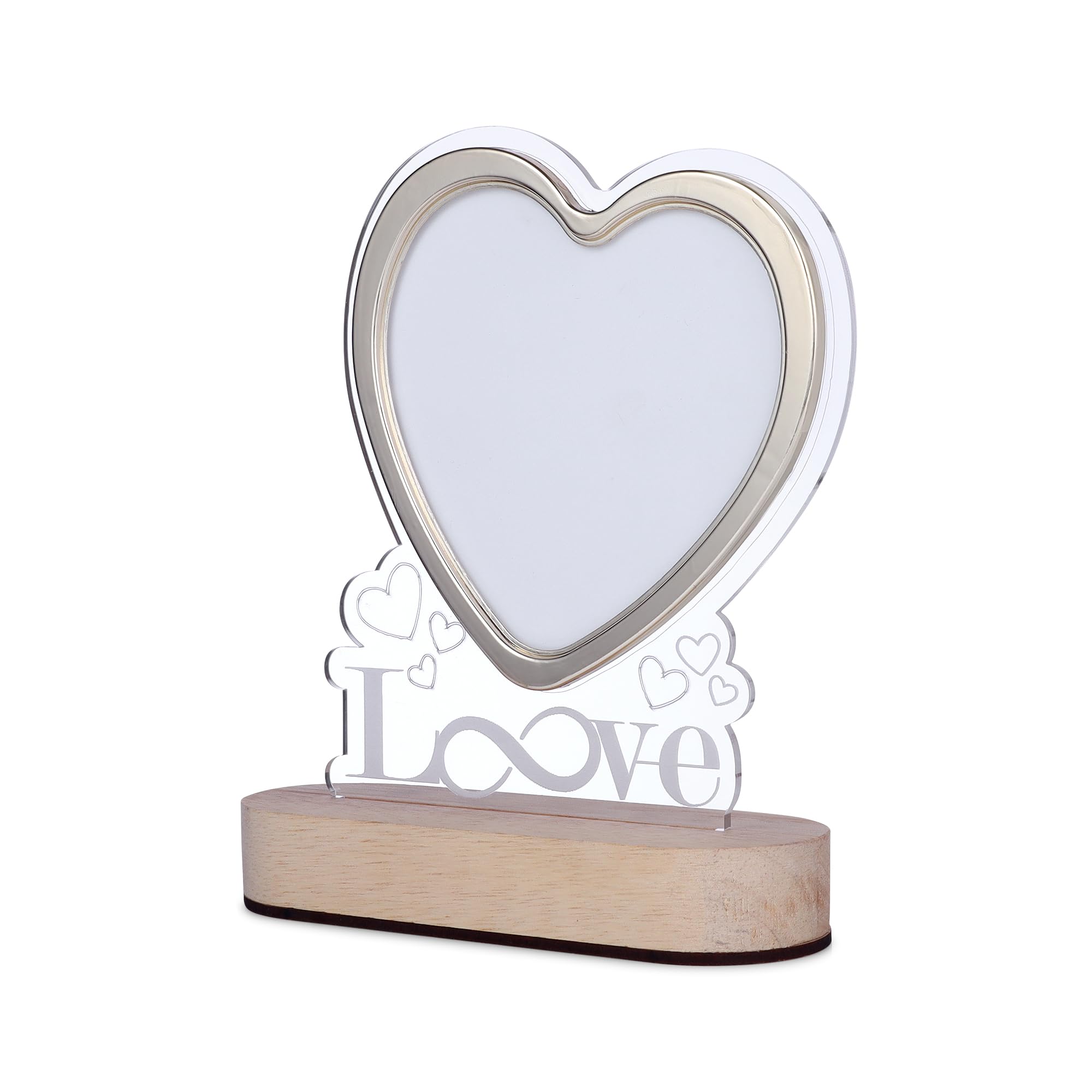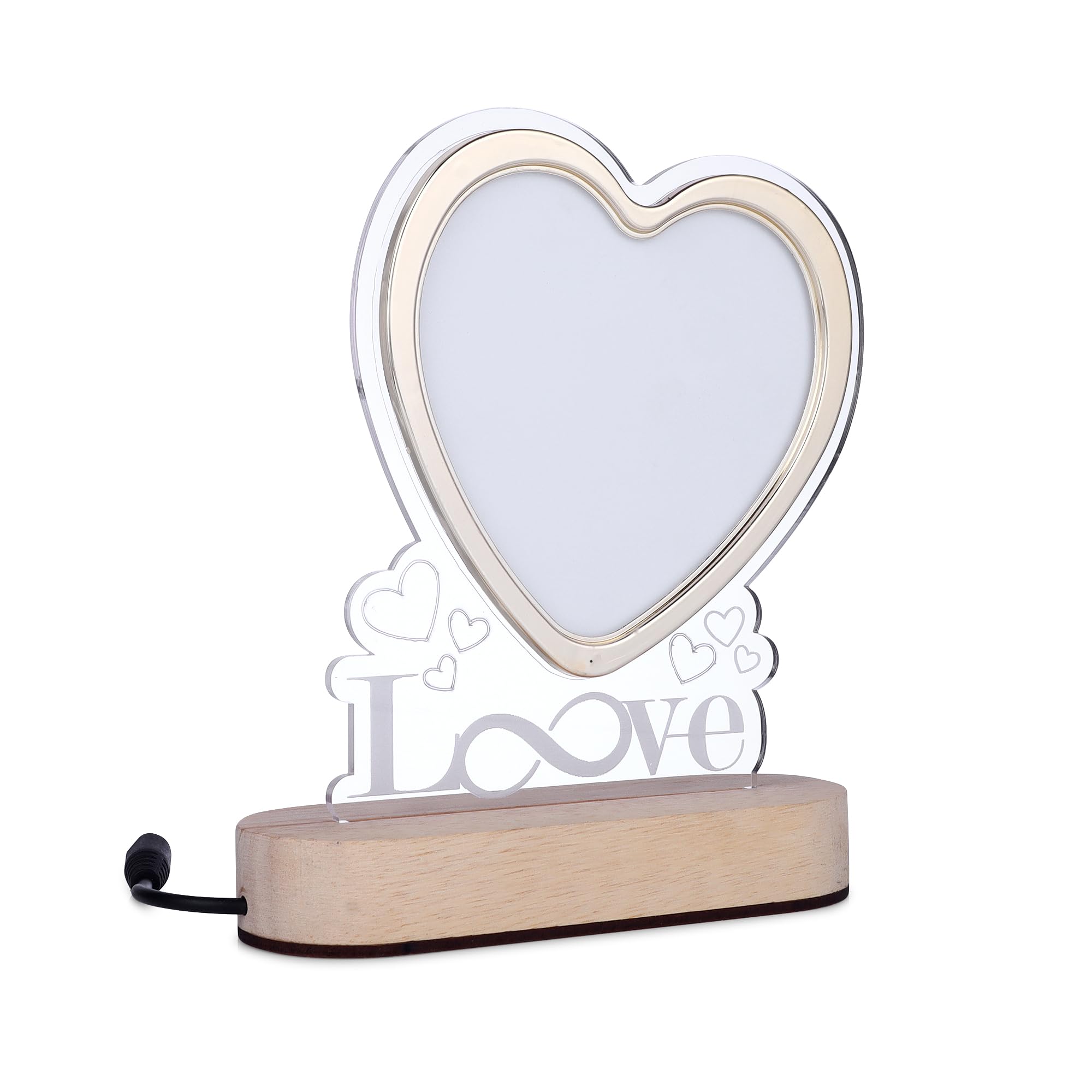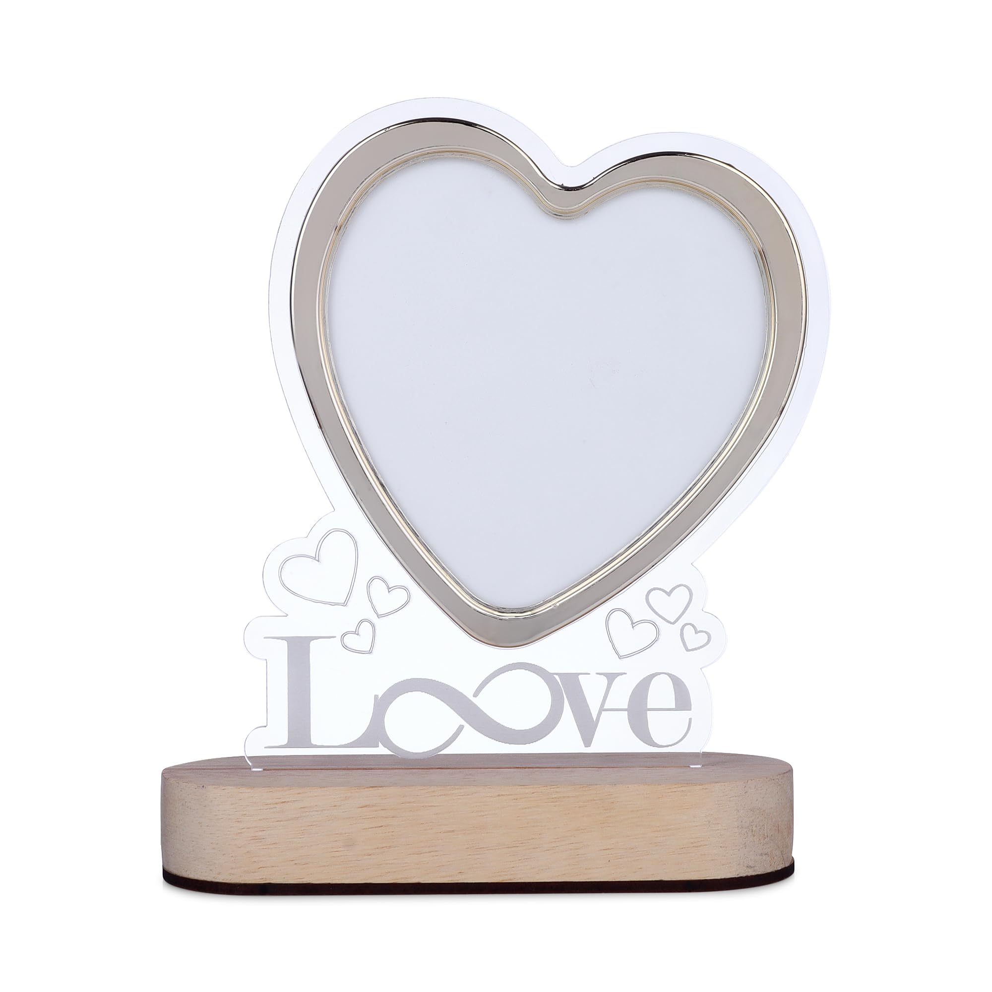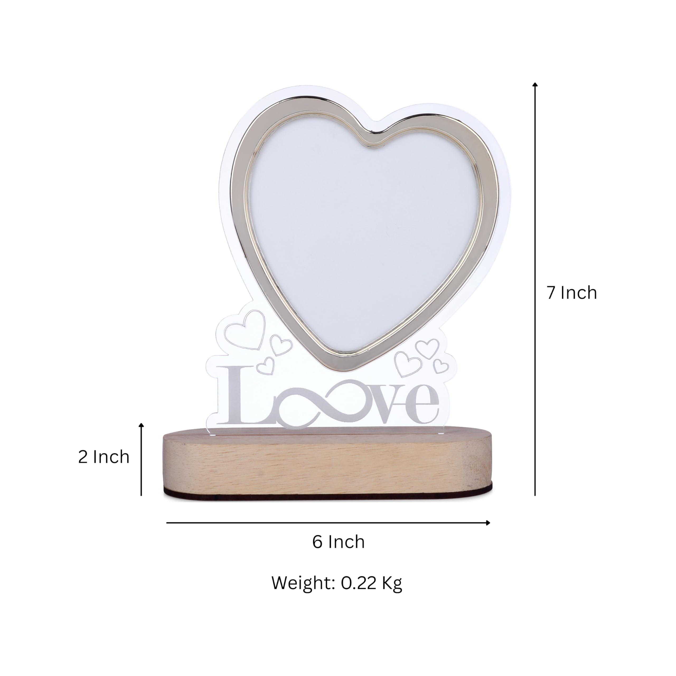 Romantic LED heart-shaped photo frame featuring glowing “Love” text and a sturdy wooden base. Perfect for gifting on anniversaries, weddings, or Valentine’s Day, this elegant frame adds a warm and charming touch to any home decor, making it ideal for bedrooms, living rooms, or study areas.