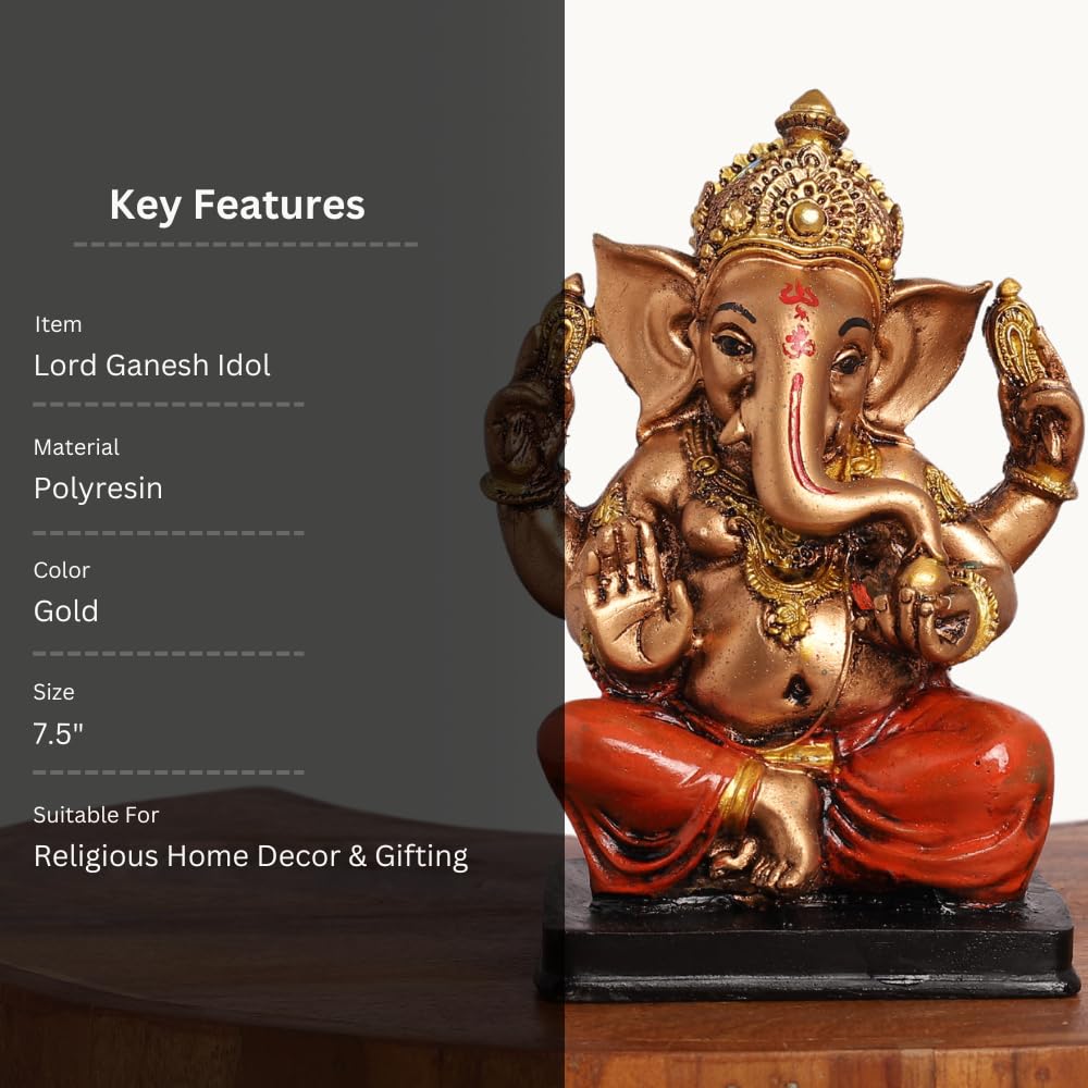 Lord Ganesha Idol in Blessing Pose |Multicolor Polyresin Decorative Idol for Home Decor & Gifting.