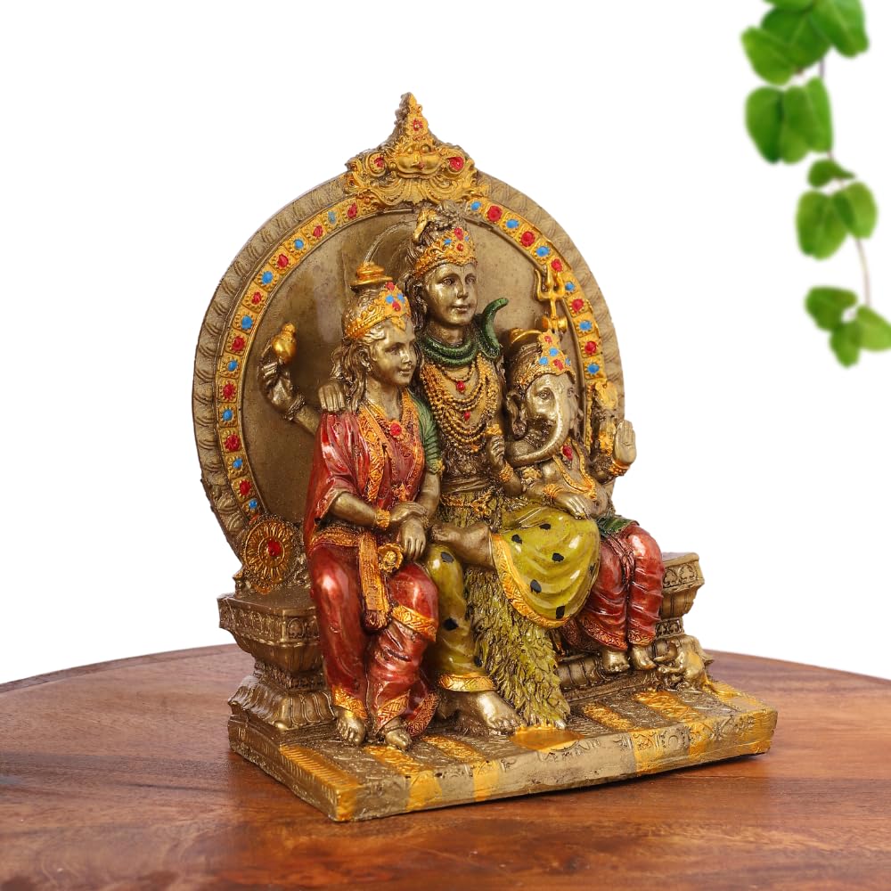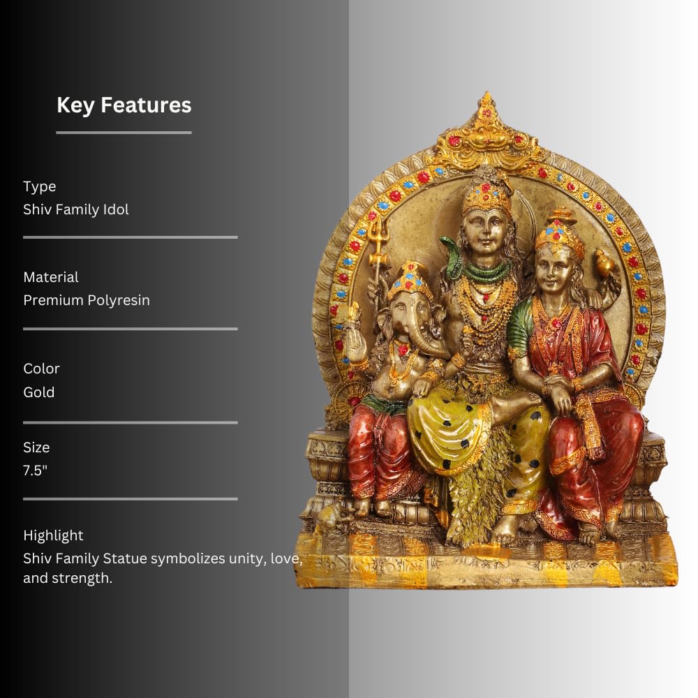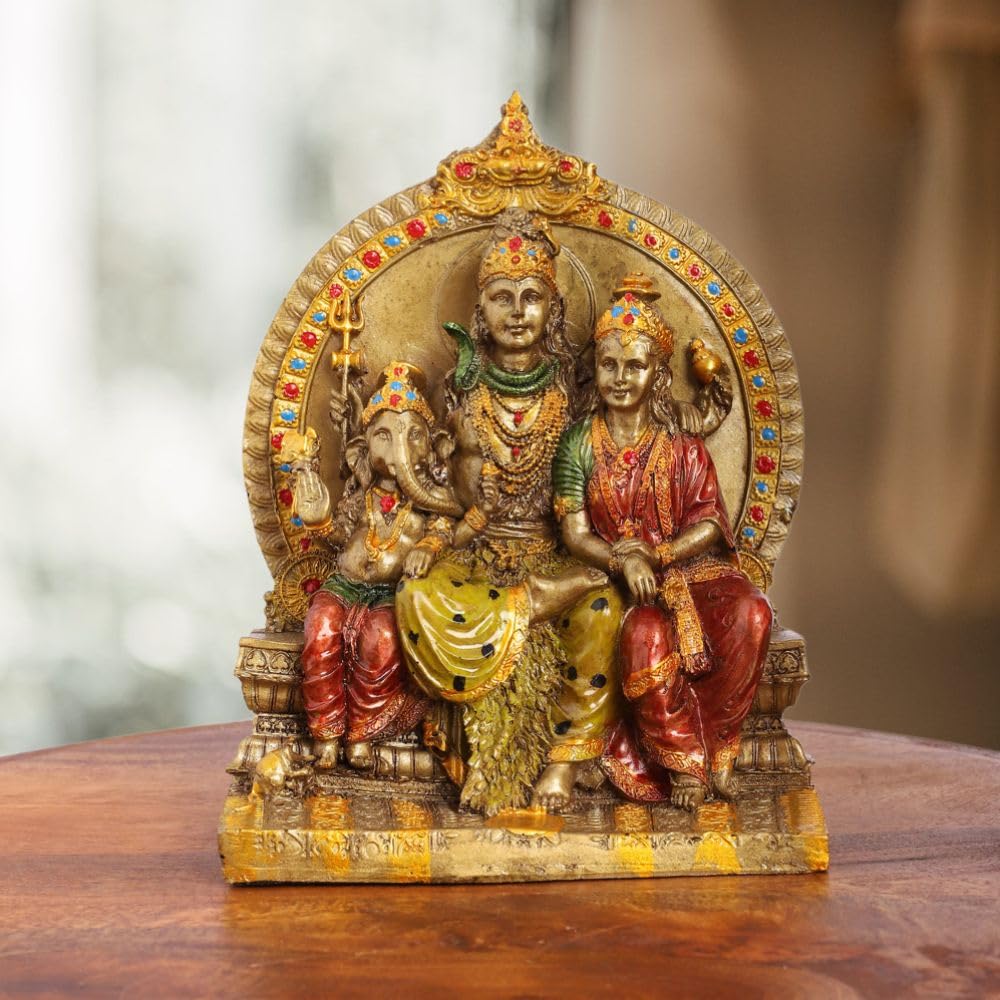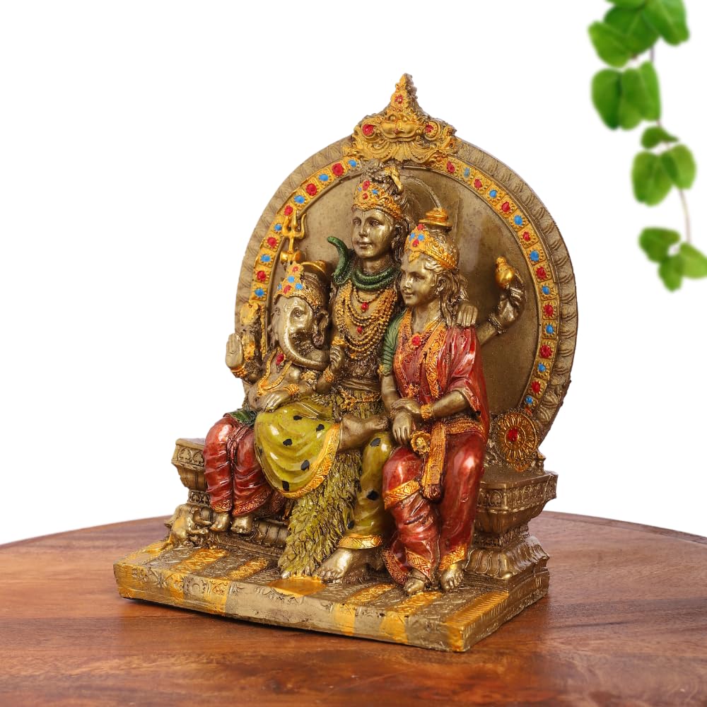 Lord Shiva Family Polyresin Statue | Shiva, Parvati & Ganesha Idol | Multicolor Home Decor
