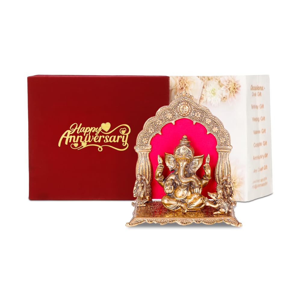The International Gift Metal Ganesha Idol with Happy Anniversary Tag is a beautifully crafted copper-finish spiritual gift designed to celebrate love and togetherness. Packed in a premium velvet box with a stylish carry bag, this idol offers a luxurious gifting experience without the need for extra wrapping. Its detailed craftsmanship makes it suitable for home temples, offices, and decorative spaces, while Lord Ganesha’s symbolism of prosperity and blessings makes it a perfect anniversary gift for couples beginning another joyful year of life together.