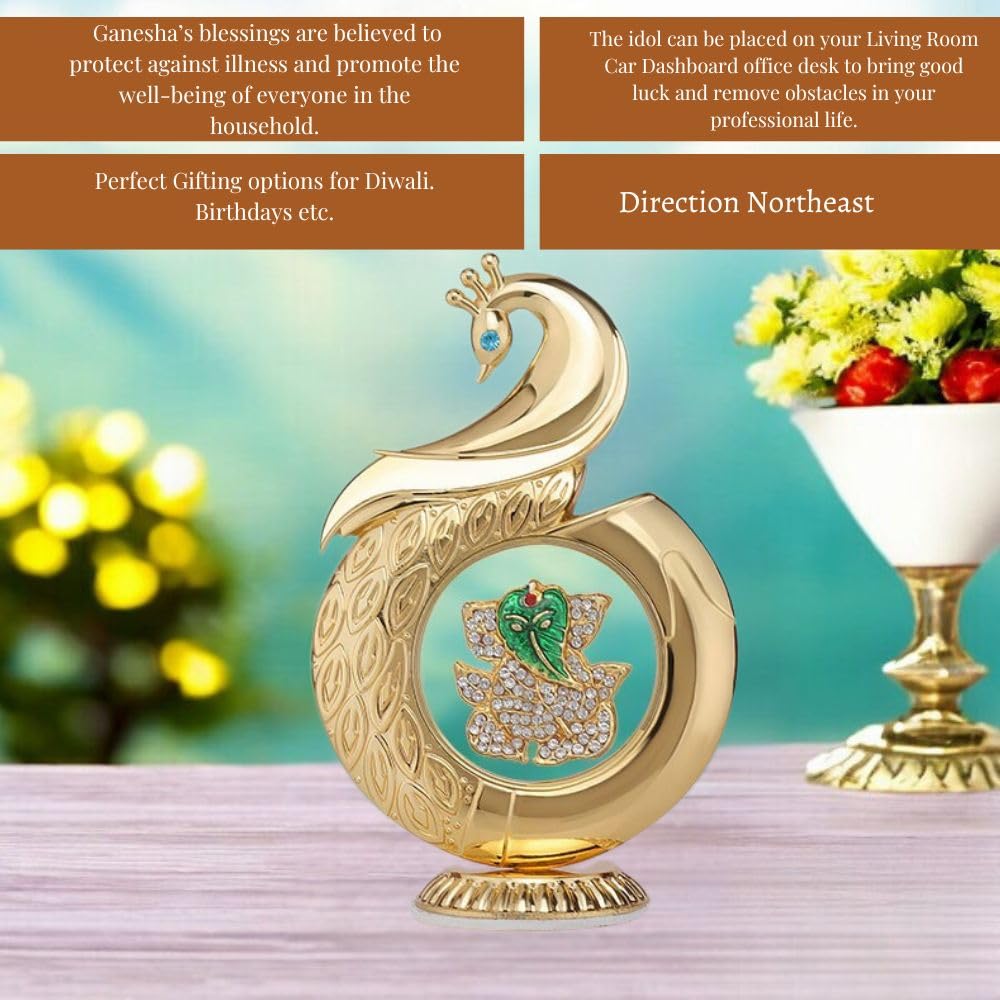 Metal Peacock Ganesha Dashboard Idol