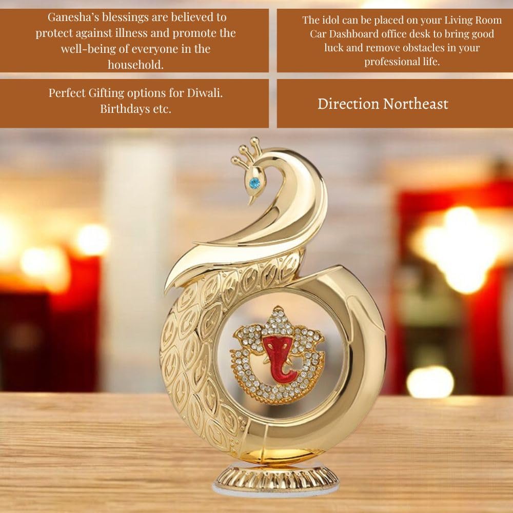 Metal Peacock Ganpati Symbol Dashboard Idol