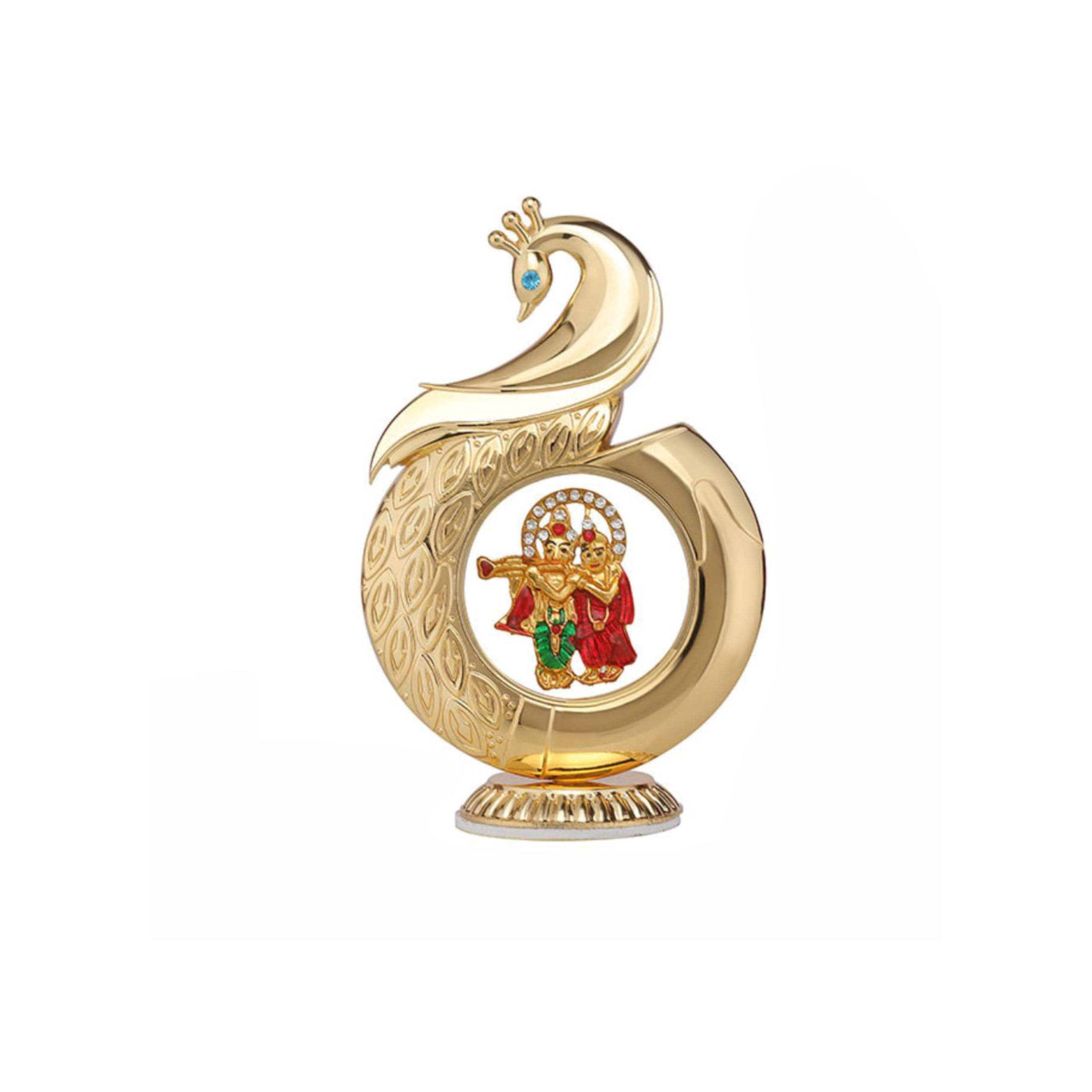 Metal Peacock Radha Krishna Dashboard Idol