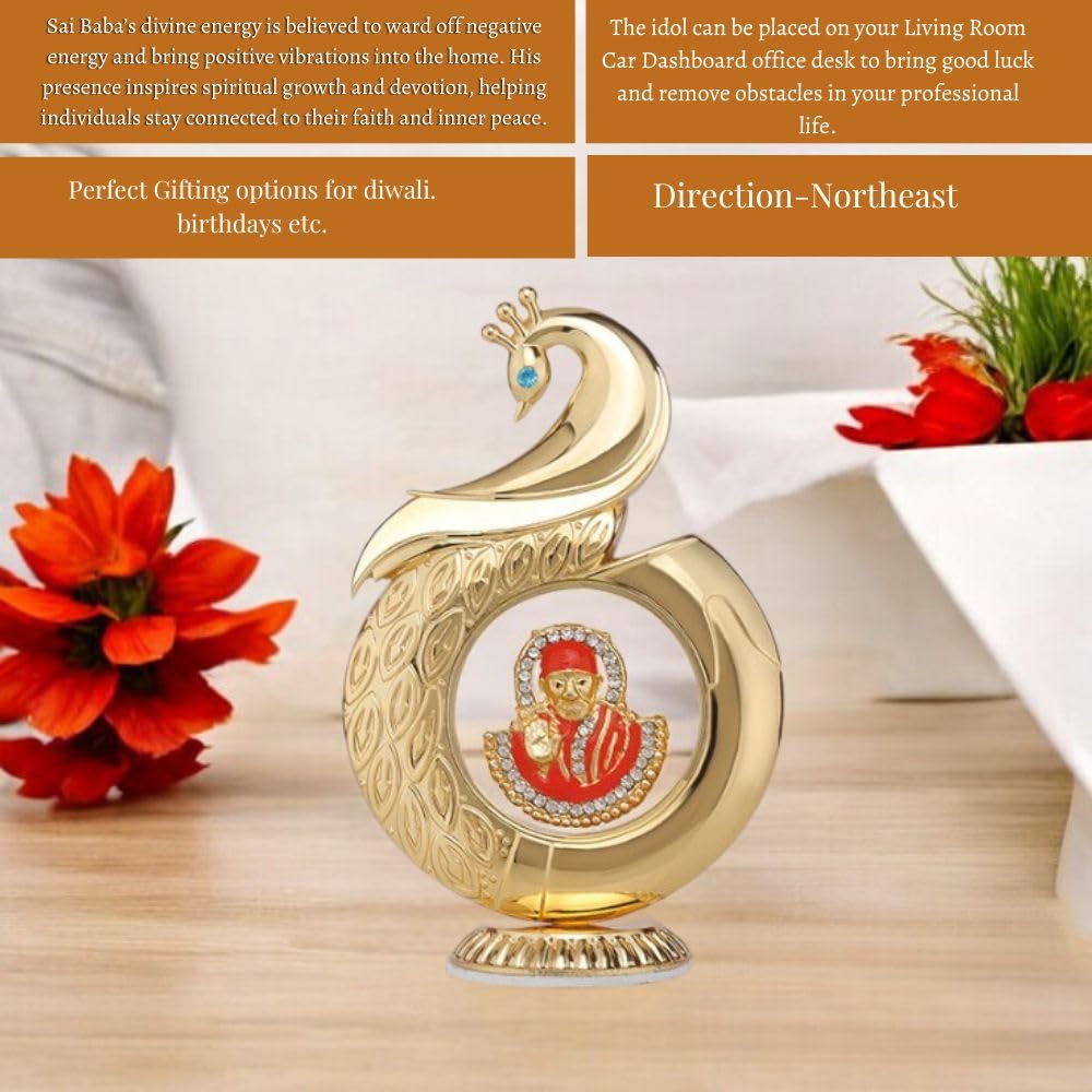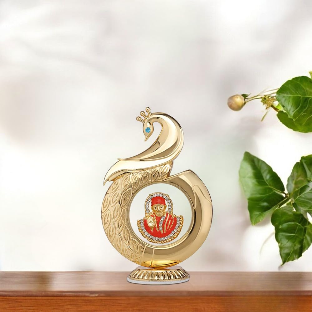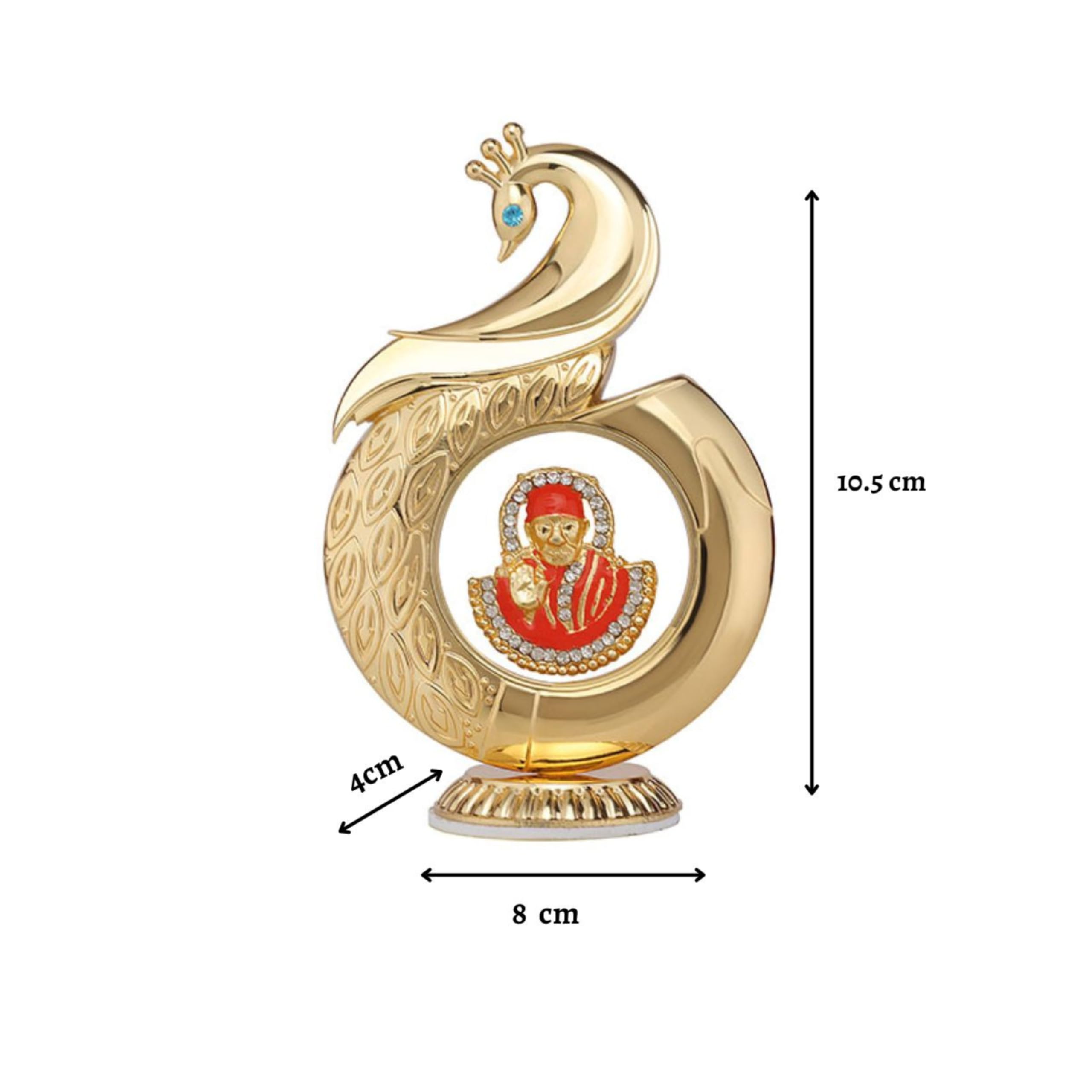 Metal Peacock Sai Baba Dashboard Idol with Adhesive