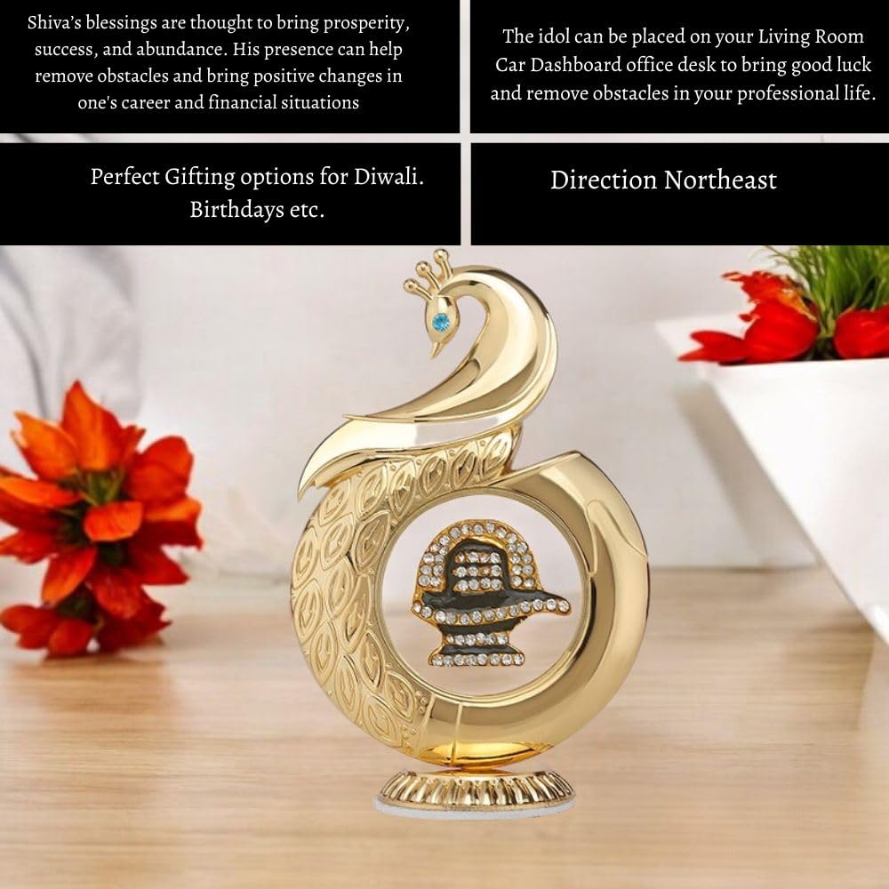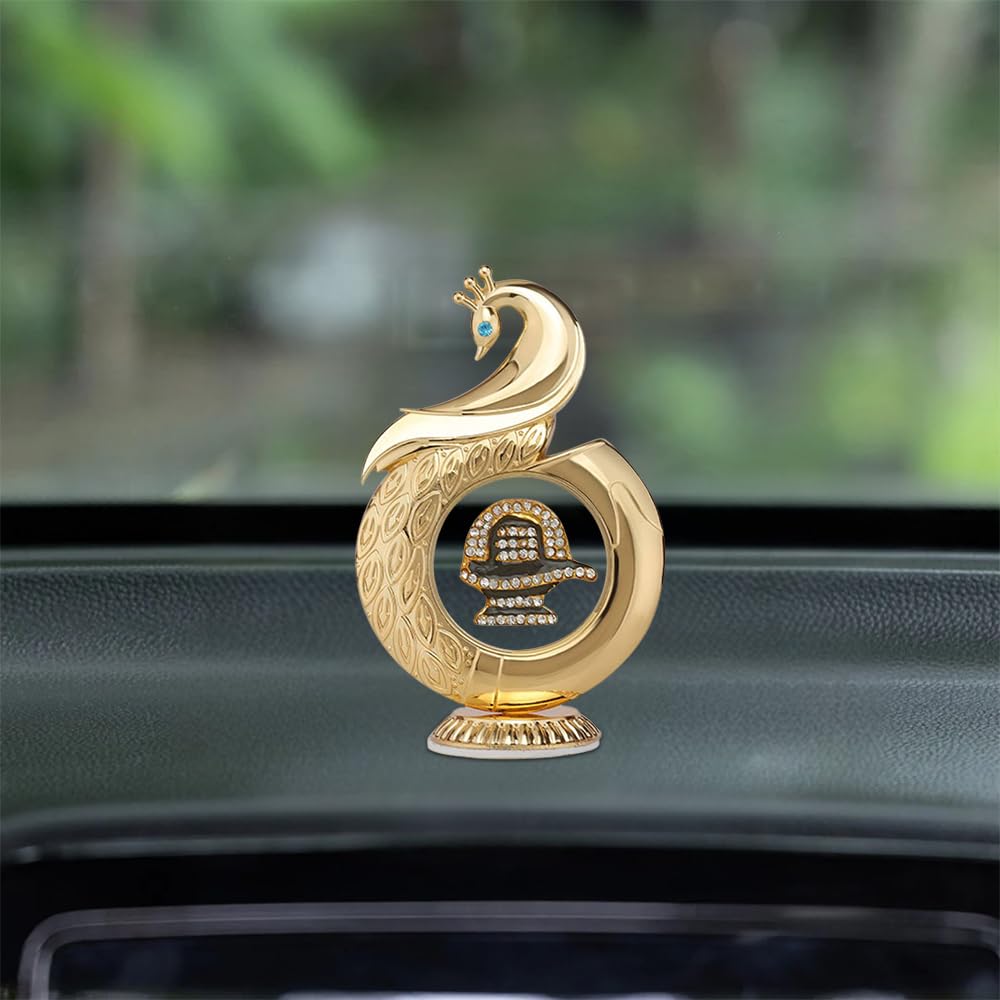 Metal Peacock Shivling Dashboard Idol with Adhesive