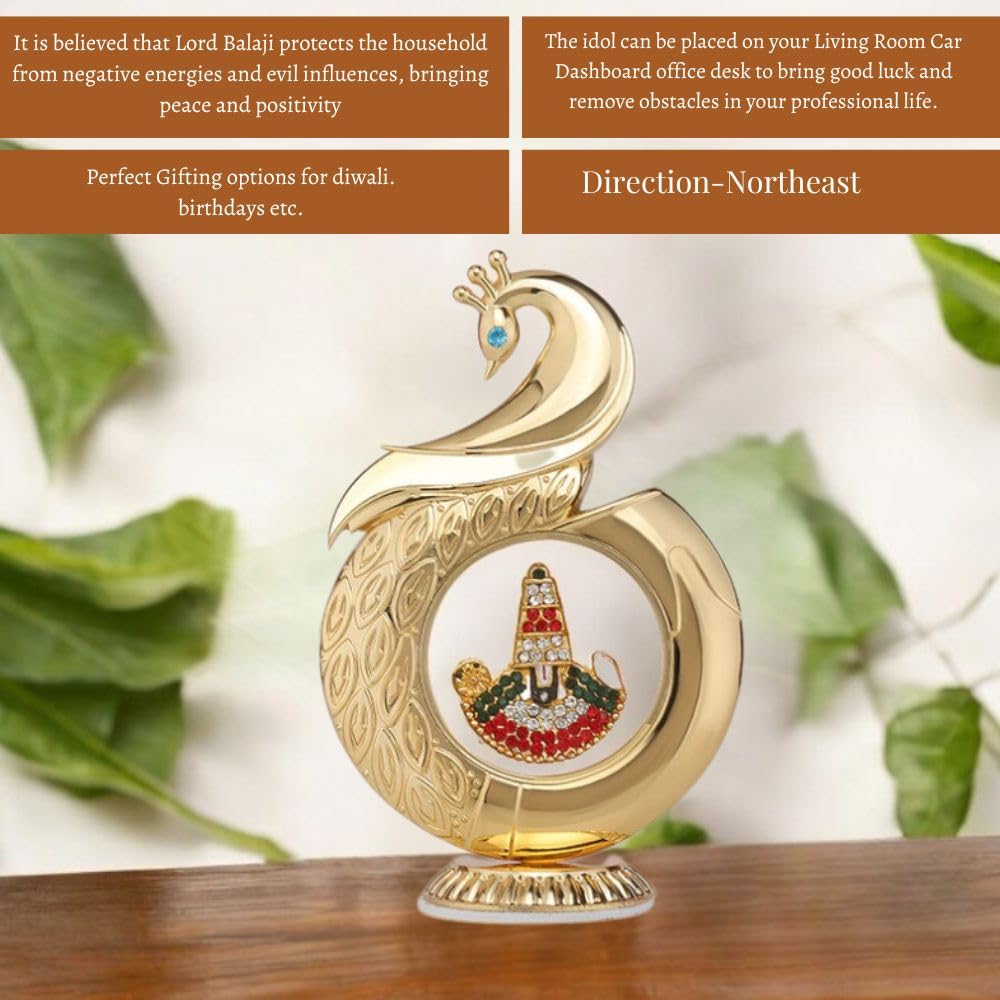 Metal Peacock Tirupati Balaji Dashboard Idol