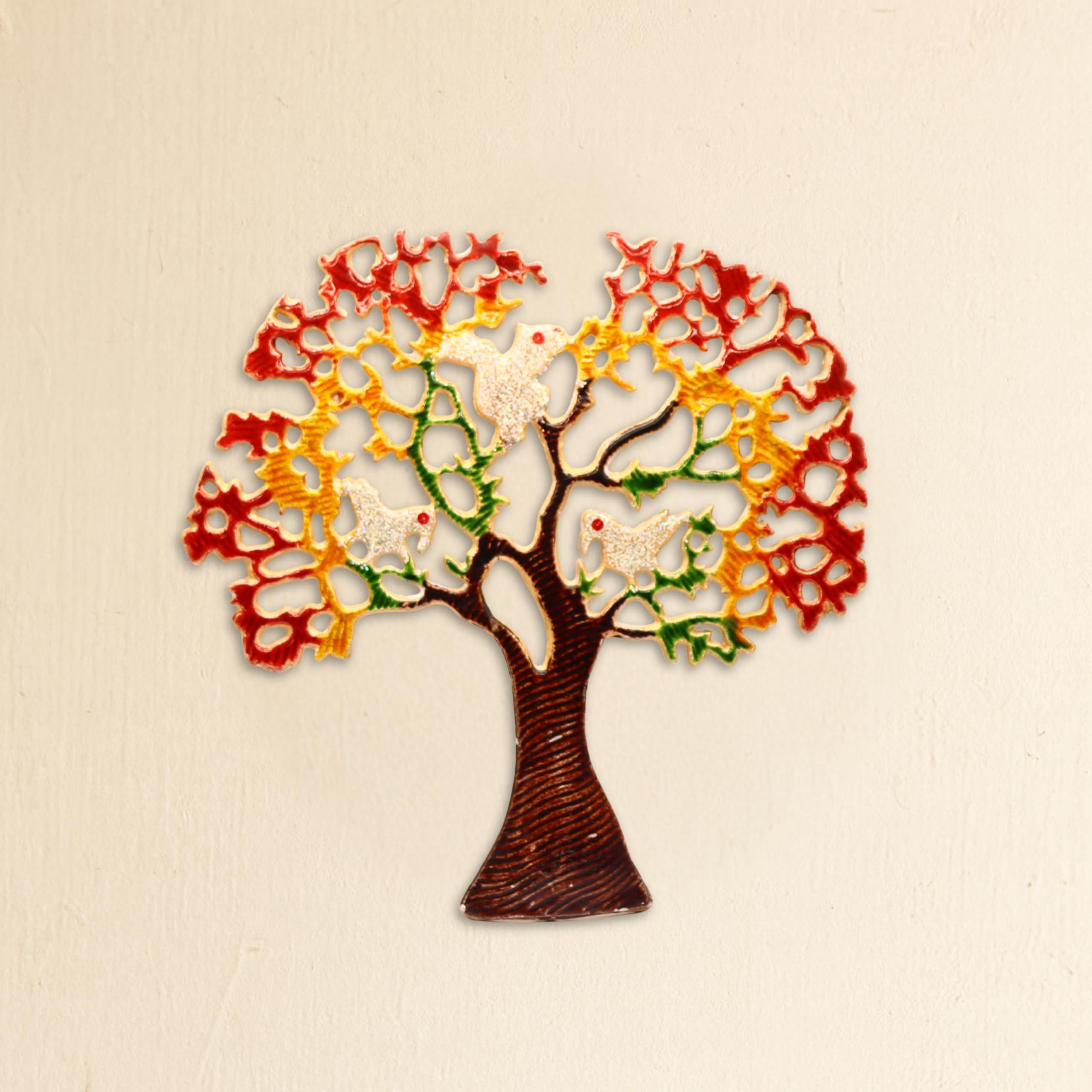 This beautiful Metal Tree Wall Hanging features a vibrant multicolor design with detailed branches, enamel shading, and delicately placed birds, giving it a modern and artistic look. Crafted from high-quality metal, it brings a refreshing natural theme to any living space and fits perfectly in living rooms, bedrooms, hallways, and office walls. Lightweight and easy to hang, it adds color, charm, and positivity to your home décor. Stylish, durable, and visually appealing, this decorative wall piece also makes a thoughtful gift for housewarmings and festive occasions.