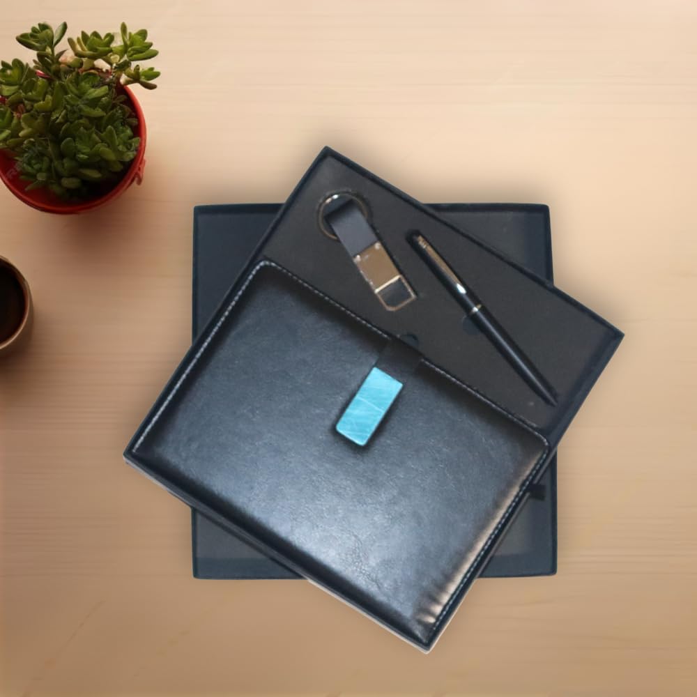 A thoughtfully curated executive gift set featuring a smooth-writing pen, a premium diary, and a stylish keychain. Perfect for professionals, this set combines practicality, style, and convenience — an ideal token of appreciation for employees, clients, and business partners.