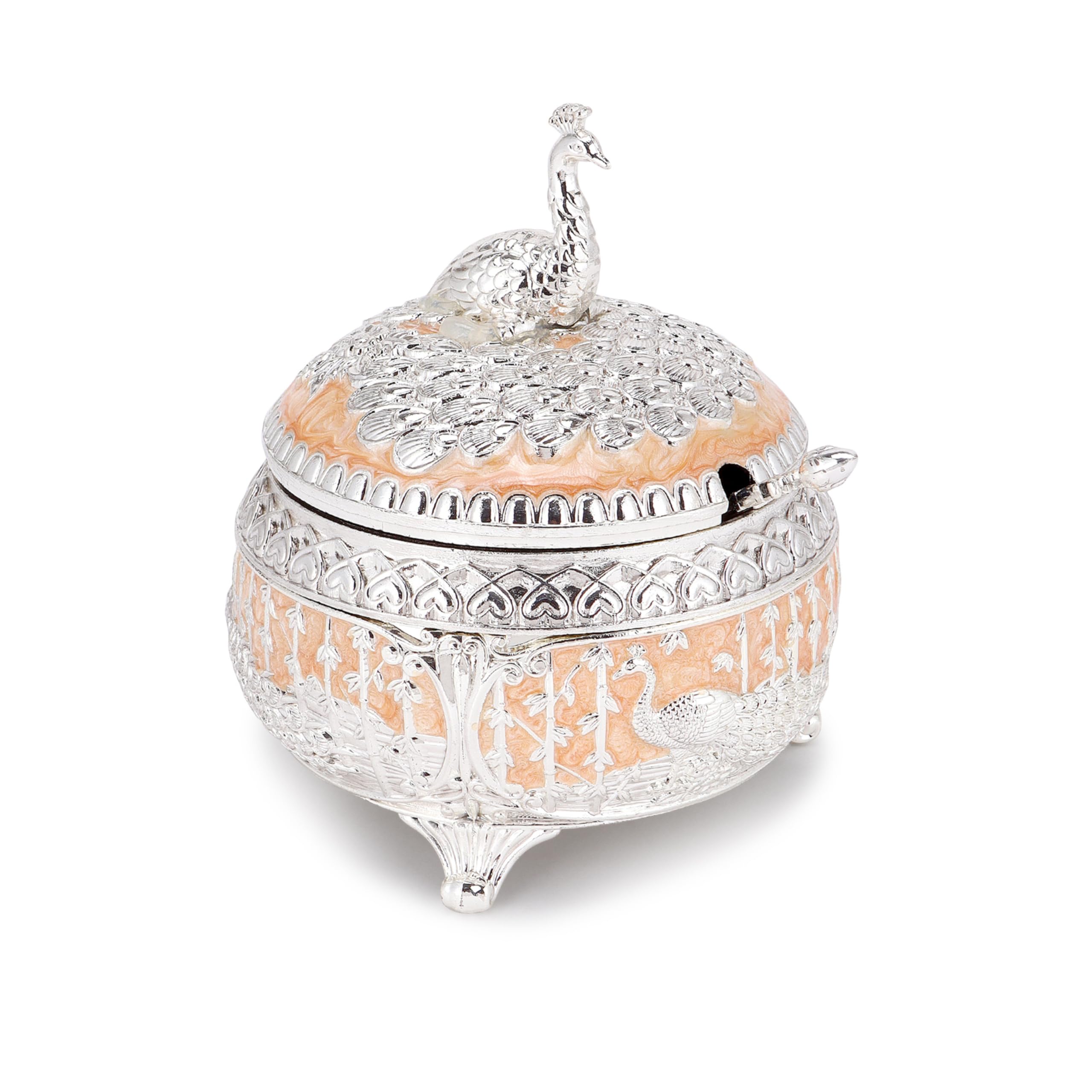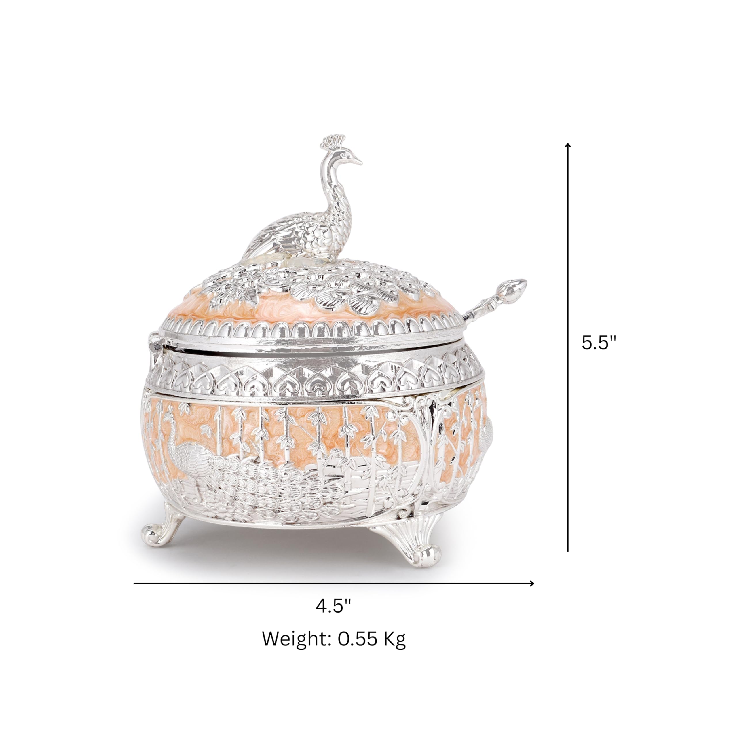Elevate your dining experience with this luxurious German Silver sugar pot, designed to add elegance and convenience to your table. Crafted from high-quality metal, it comes with a matching spoon for easy serving of sugar, jams, or condiments. Its sleek and timeless design makes it perfect for daily use, tea parties, or special occasions. This sugar pot is not only functional but also serves as a stylish centerpiece for your dining or coffee table. Ideal for gifting to friends and family, it blends practicality with sophistication effortlessly.