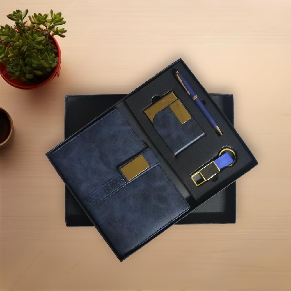 A thoughtfully curated executive gift set featuring a smooth-writing pen, a premium diary, a stylish keychain, and a practical card holder. Perfect for professionals, this set combines practicality, style, and convenience — an ideal token of appreciation for employees, clients, and business partners.