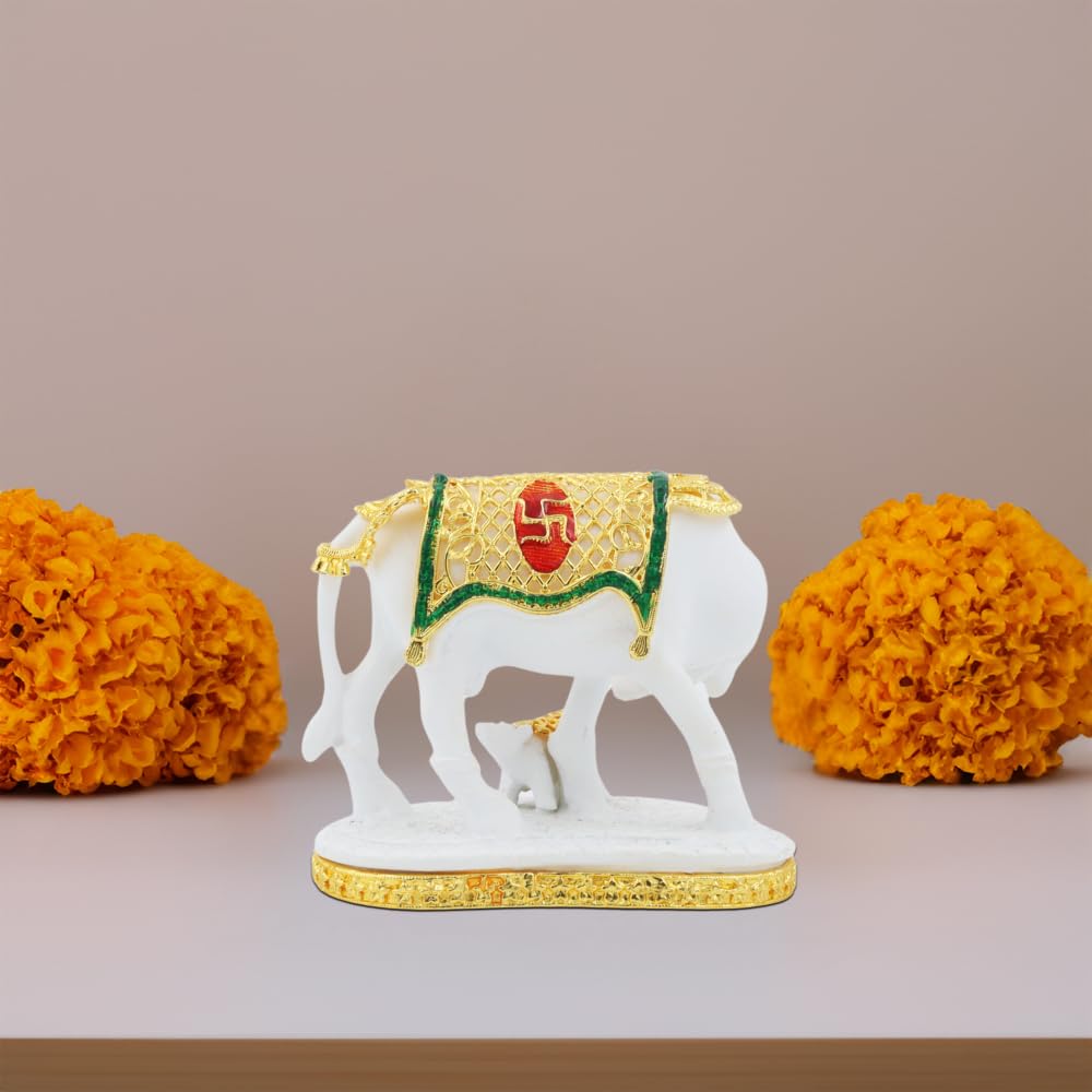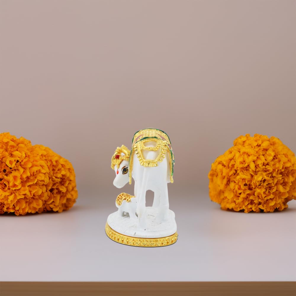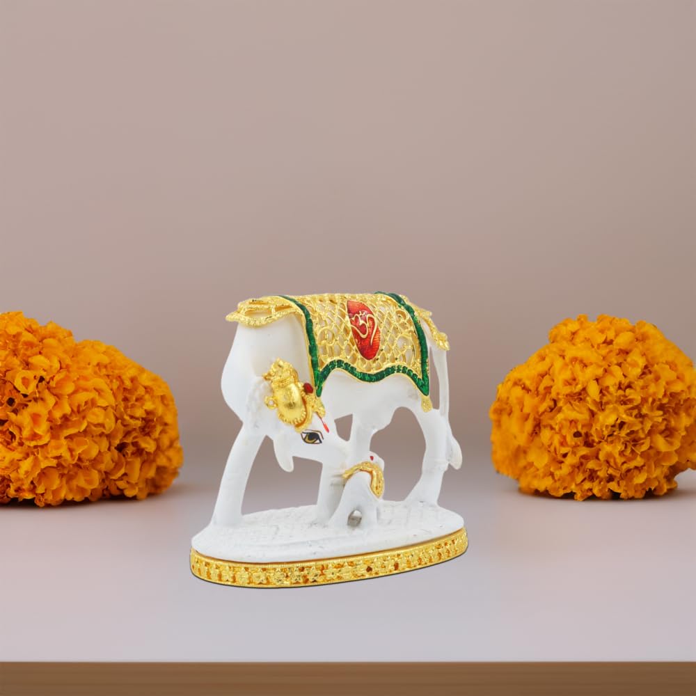 Resin Kamdhenu Cow Showpiece for Home & Spiritual Décor