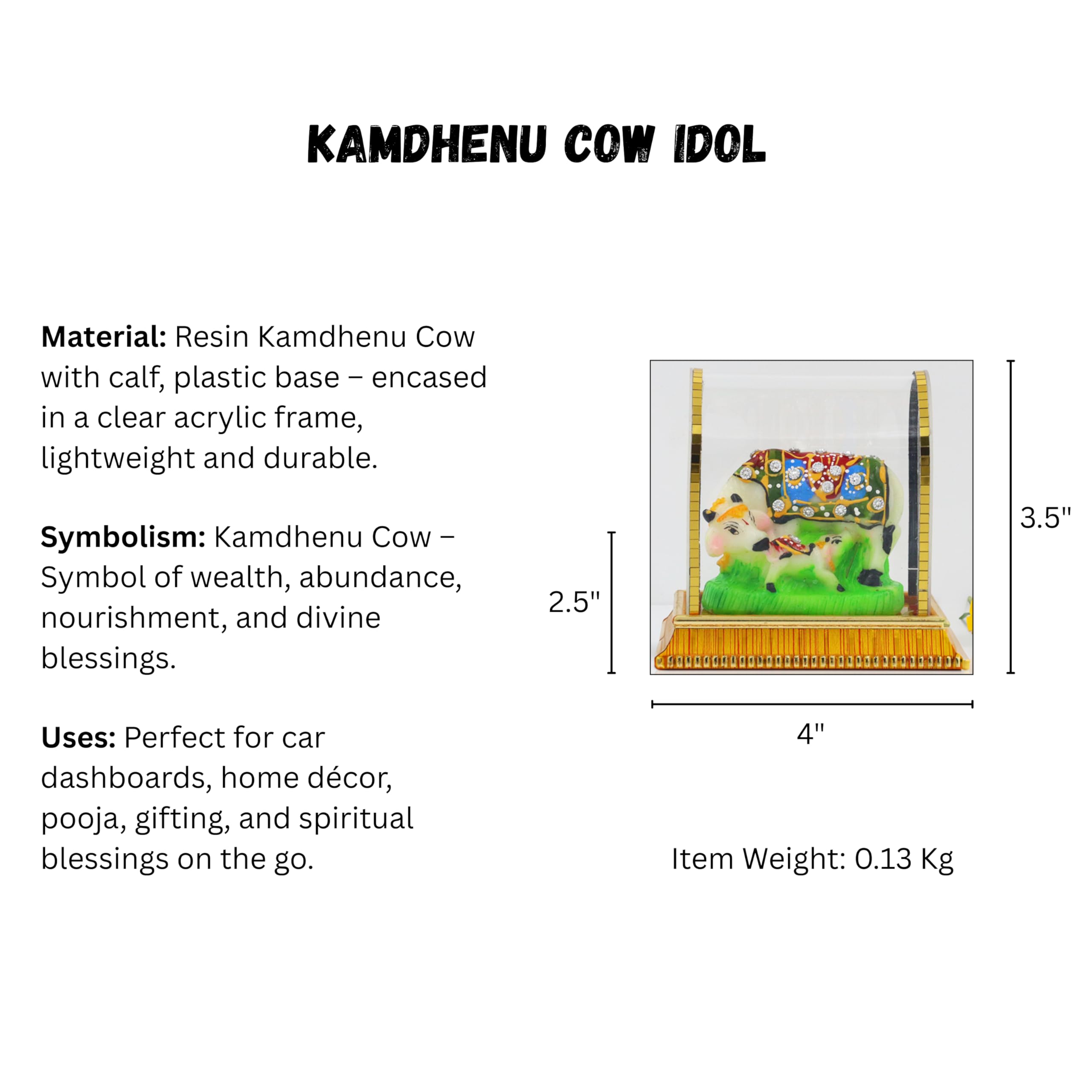 Package Contains: Acrylic Kamdhenu Cow Idol