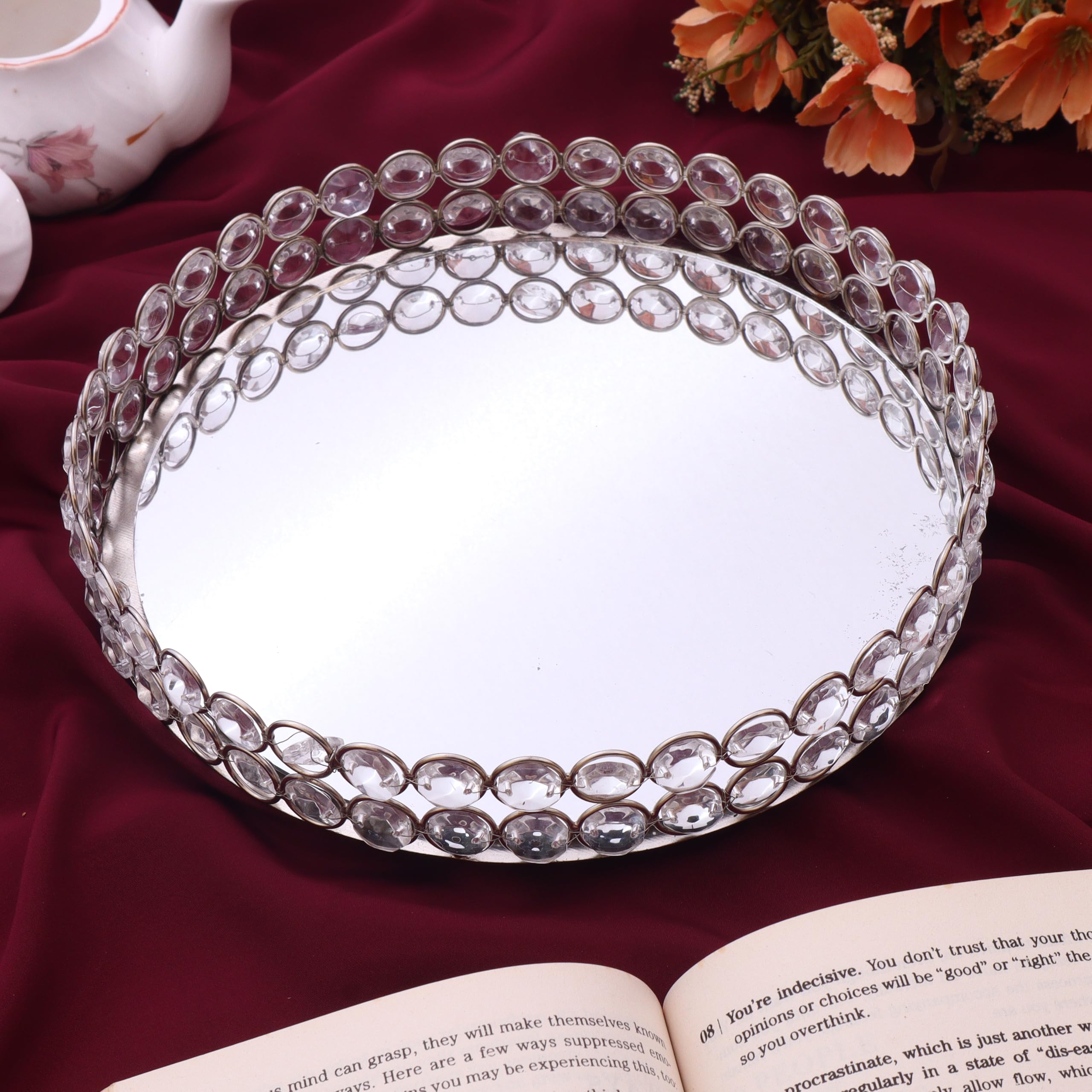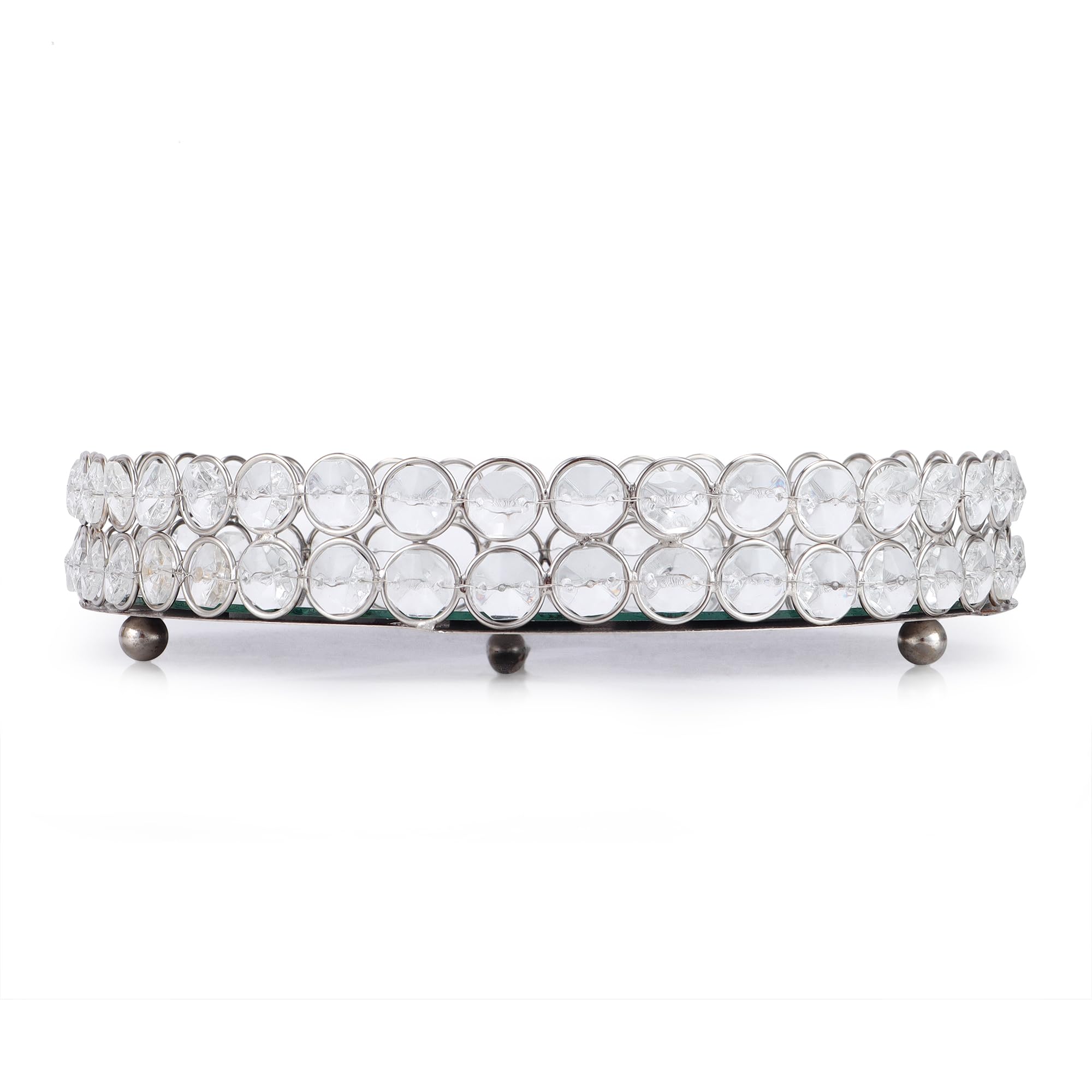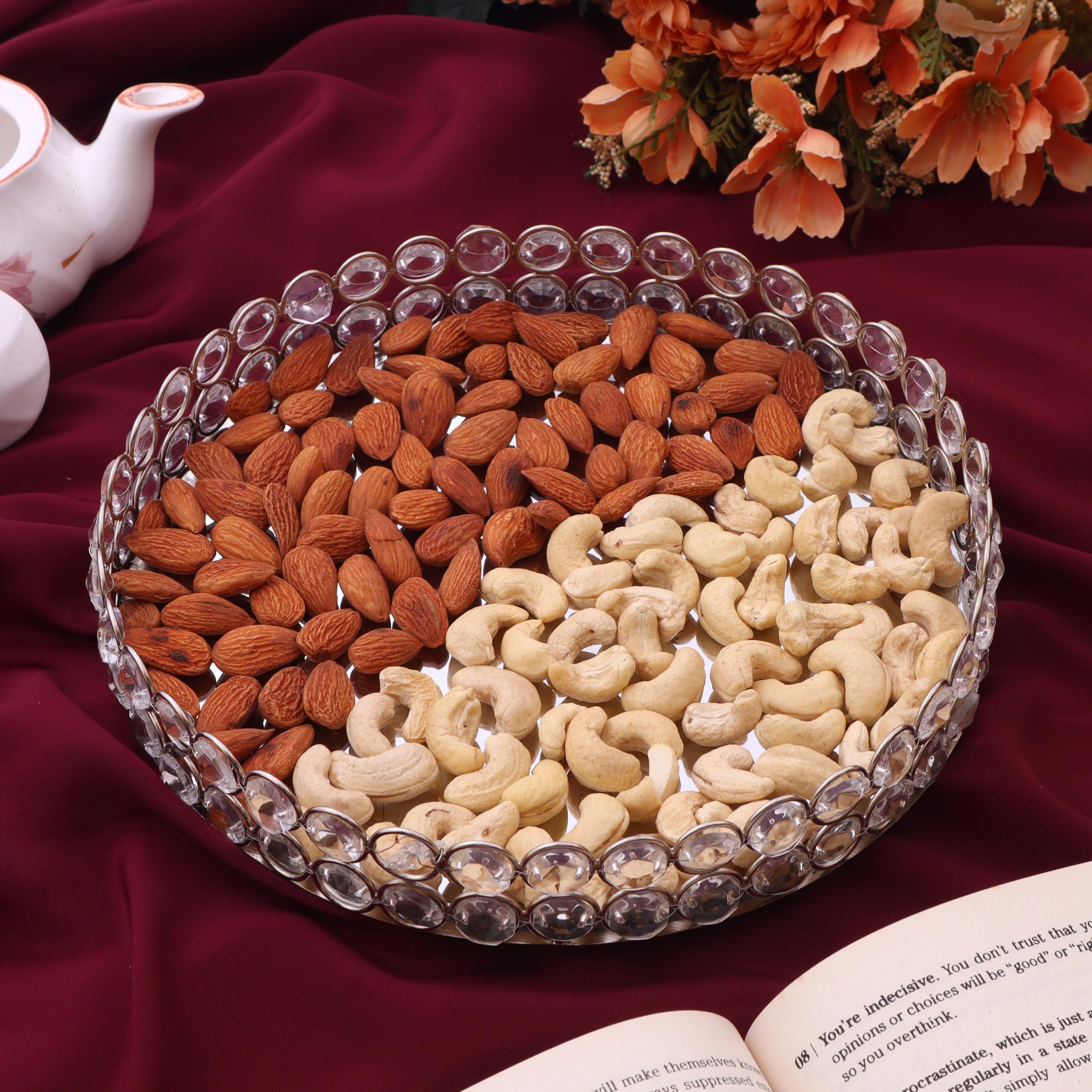 A stylish glass dry fruit tray designed with a golden crystal border that beautifully combines elegance with practicality. The clear glass base ensures safe and hygienic serving, while the shimmering golden crystal frame adds a luxurious touch to any setting. Perfect for serving dry fruits, sweets, chocolates, and snacks during festive occasions, this tray also enhances the beauty of your dining table, kitchen, or living room. Durable and versatile, it can be used daily as a serving platter or as a decorative centerpiece. An excellent choice for weddings, housewarmings, Diwali, Raksha Bandhan, and other celebrations, this tray makes a thoughtful gift as well as a timeless addition to your home.