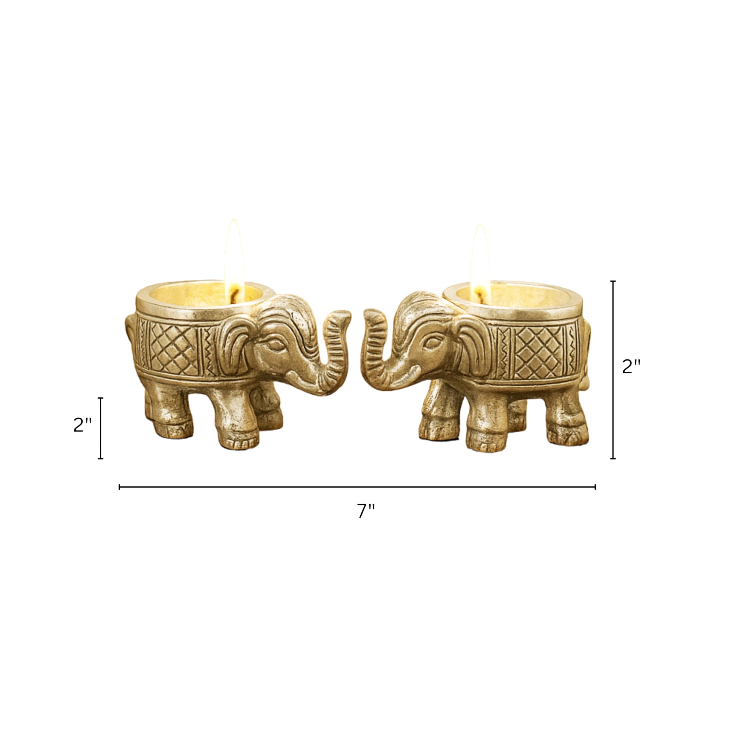 Bring charm and elegance to your celebrations with this beautifully crafted Elephant Design Metal Tealight Candle Holder Pair. Designed in a traditional style with a golden finish, these tealight holders are perfect for Diwali decoration, festive lighting, pooja rituals, and home decor. The unique elephant shape symbolizes wisdom, strength, and good fortune, making it an auspicious addition to any space. Place them in your living room, pooja room, dining table, or balcony to create a warm and inviting ambience. These tealight holders also make a thoughtful choice for gifting on Diwali, housewarming, weddings, anniversaries, or corporate occasions, leaving a lasting impression of elegance and positivity.