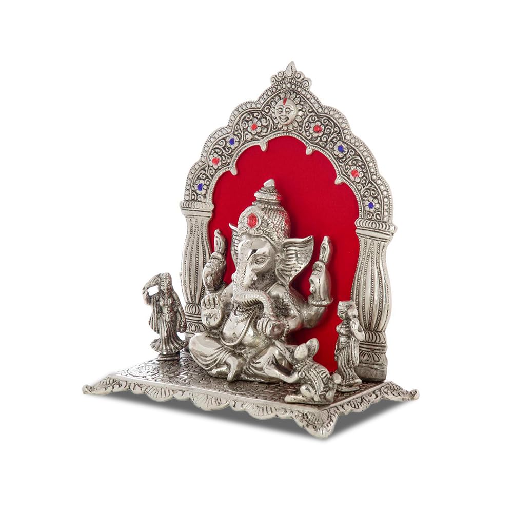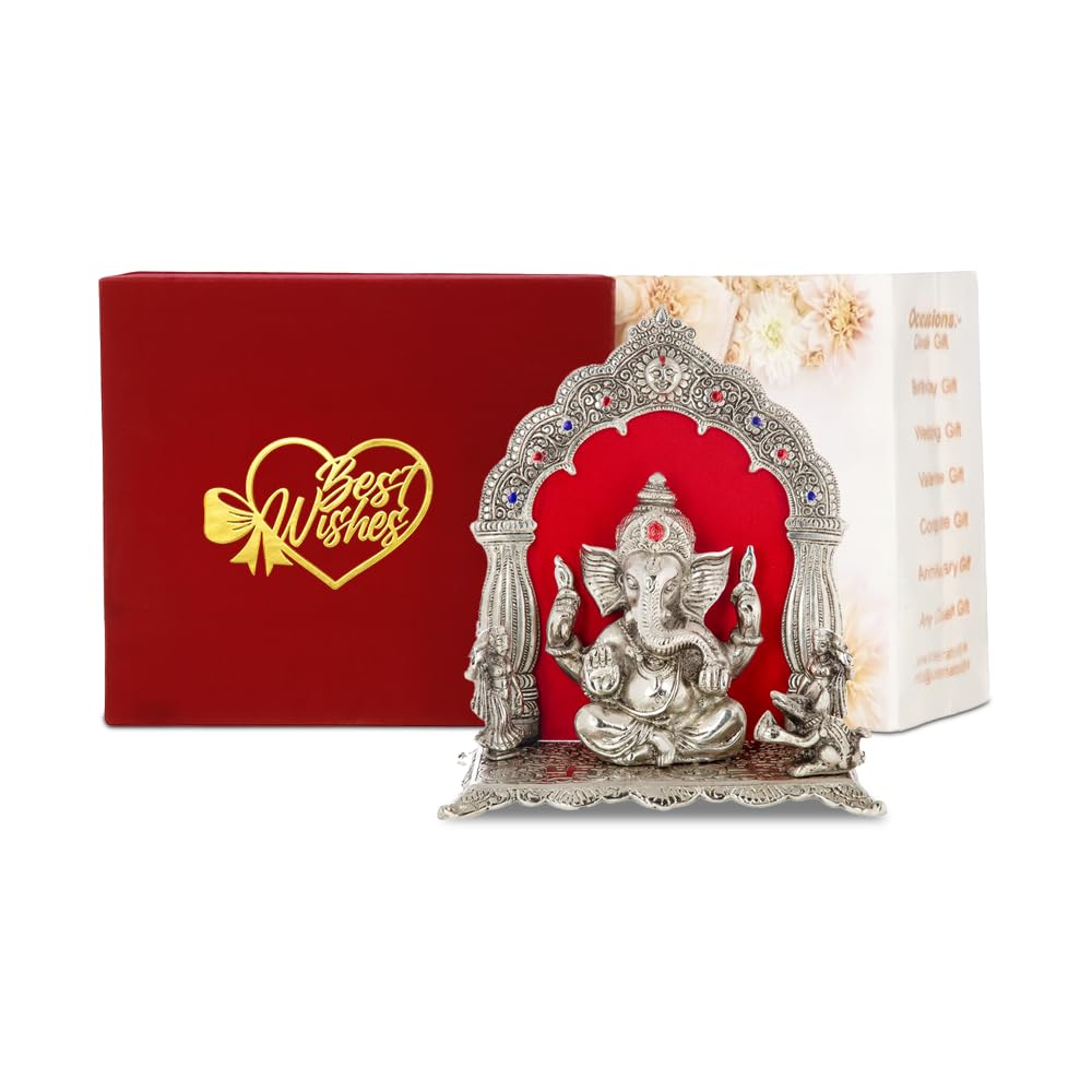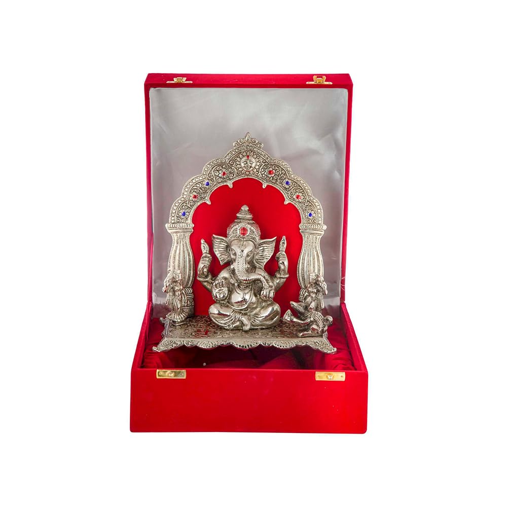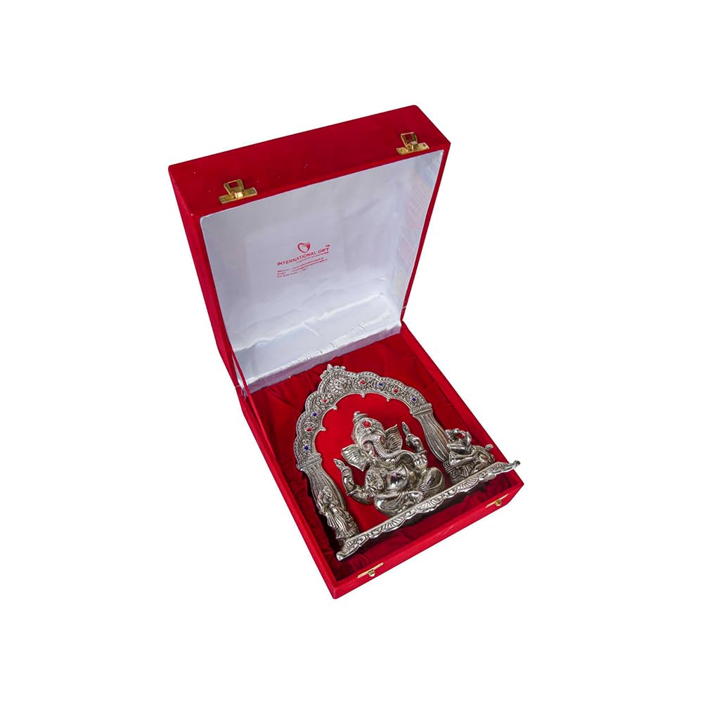 Silver Plated Ganesha Idol with Velvet Box & Best Wishes Tag