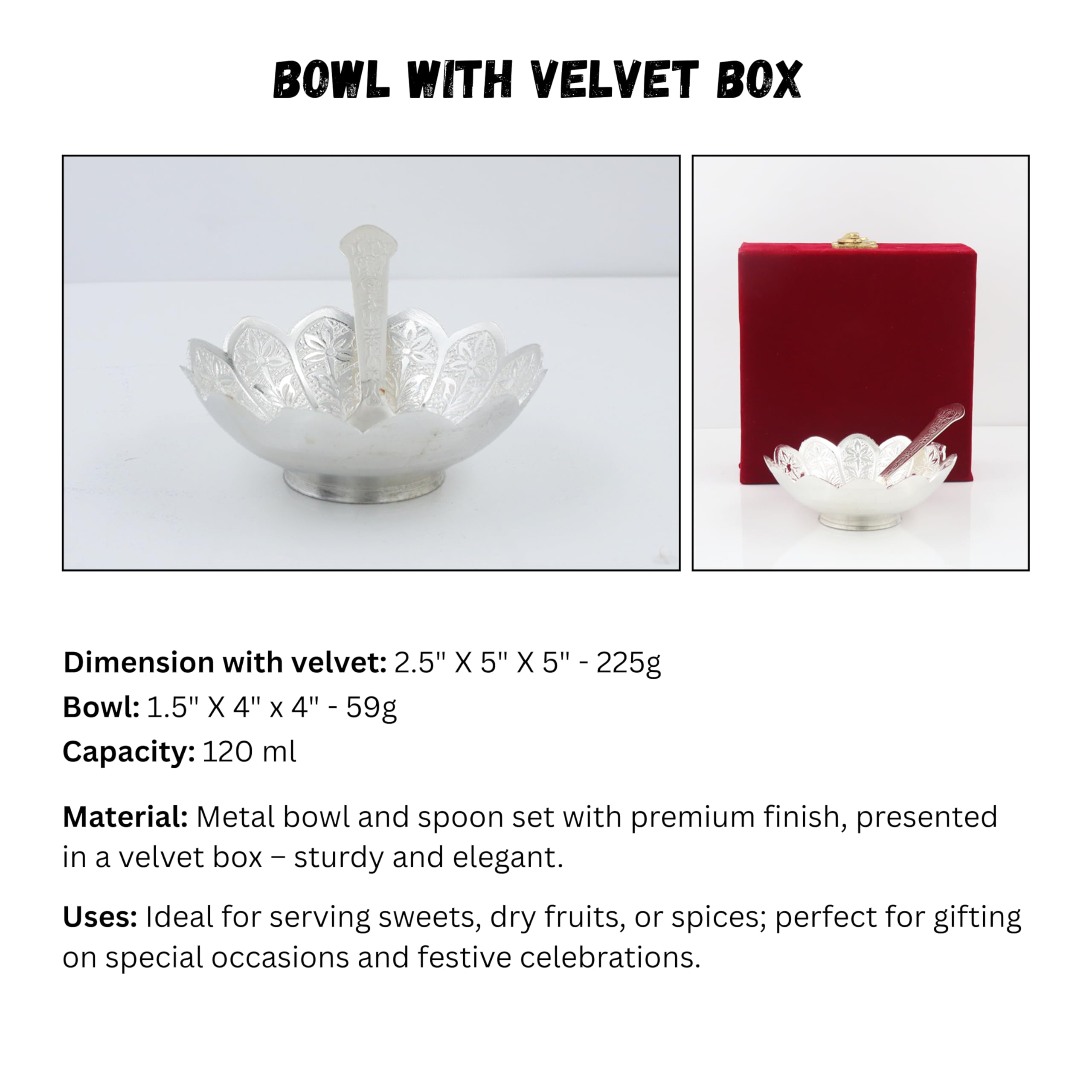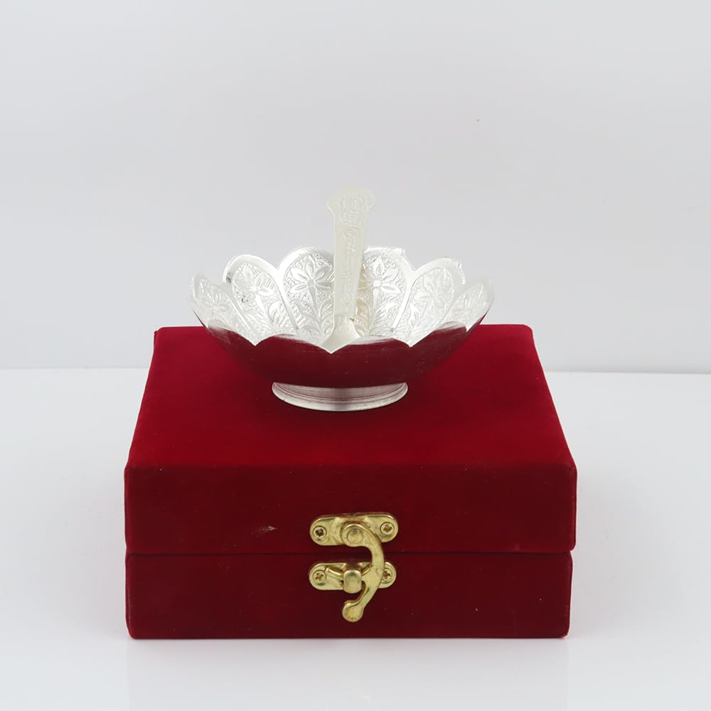 Silver Plated Lotus Bowl with Spoon in Velvet Box – Premium Gift Set